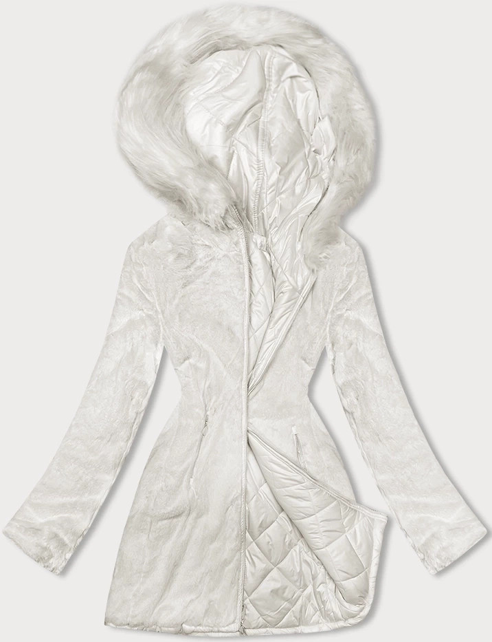 Dámska obojstranná prešívaná bunda - kožuch v ecru farbe (H-897-11) odstíny bílé M (38)