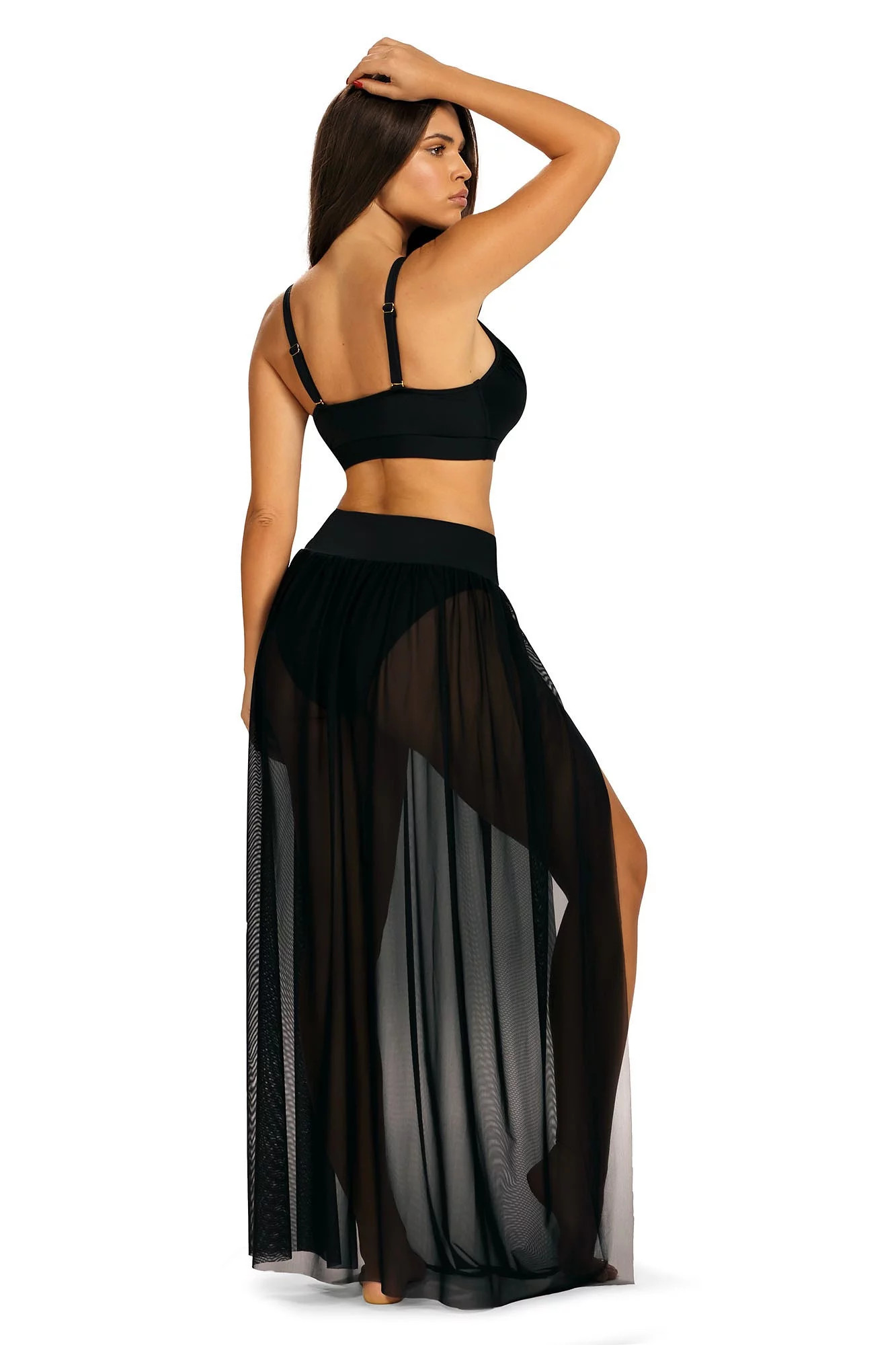 Plážová sukňa-pareo - z tenkej priehľadnej sieťoviny - elastický pás - veľký rozparok na boku Materiálové zloženie: 85 % polyamid, 15 % elastan