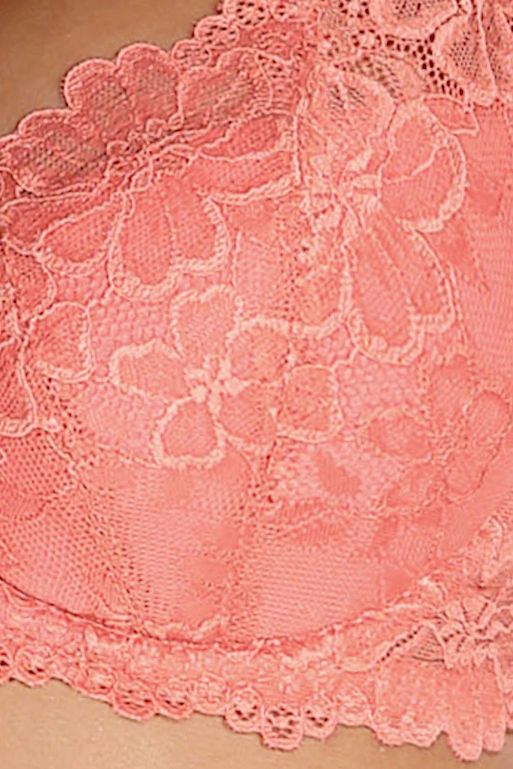 Dámska podprsenka 053/22 Carmela peach MAT - broskyňová farba - čipka s kvetinovým motívom - vystužená - vnútorná strana košíčkov podšitá bavlnou - bočné časti s kosticami - nastaviteľné a neodnímateľné čipkované ramienka - nadvihuje a drží poprsieZloženie materiálu: 44% polyamid + 18% polyester + 16% bavlna + 16% polyuretán + 6% elastan