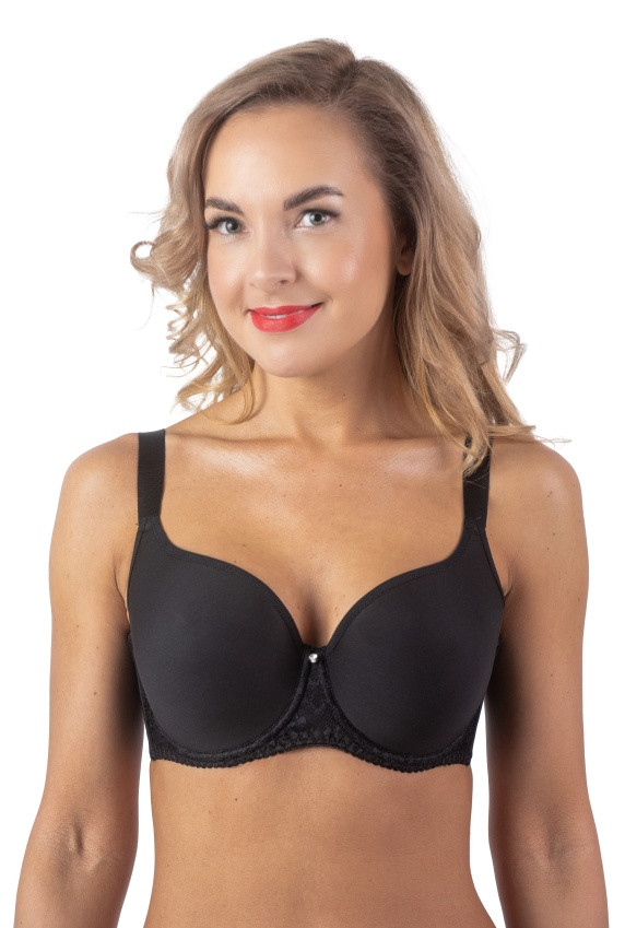 Fantasy podprsenka pre ženy. Vďaka materiálu 3D spacer (materiál v tvare lievika) je táto podprsenka ľahká, vzdušná a odvádza pot od tela, pričom sa budete cítiť úplne pohodlne a sviežo. Pevne všité popruhy sú širšie a ich dĺžka sa dá ľahko nastaviť. Okolo spodnej časti košíčkov je všitá čipka a medzi košíčkami je strieborná aplikácia s kamienkom. Jemné košíčky sú zvnútra vystužené bočnými výstuhami. Vyšší stred a obvod dokonale podporujú aj väčšie poprsie. Zadné zapínanie je na dva háčiky a tri polohy. Zloženie materiálu: 85 % polyamid, 15 % elastan.