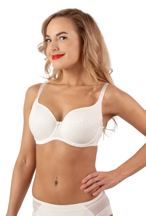 Dámska podprsenka 3D SPACER z novej kolekcie Triumph značky Fantasy. Podprsenka má jemne vystužené košíčky a vyšší stred. Vnútri košíčkov na okraji je všitá jemná látka na podporu poprsia. Vďaka materiálu 3D spacer (materiál v tvare lievika) je táto podprsenka ľahká, vzdušná a odvádza pot od tela, pričom sa budete cítiť úplne pohodlne a sviežo. Obvod podprsenky je vystužený silikónovou kosticou. Košíčky majú kostice a medzi nimi je strieborná aplikácia s kamienkom s malou mašličkou. Vyšší stred a obvod dokonale podporujú aj väčšie poprsie. Pevne všité popruhy majú nastaviteľnú dĺžku. Zadné zapínanie je na dva háčiky s dvoma polohami. Zloženie materiálu: 65% polyamid, 20% elastan, 15% bavlna