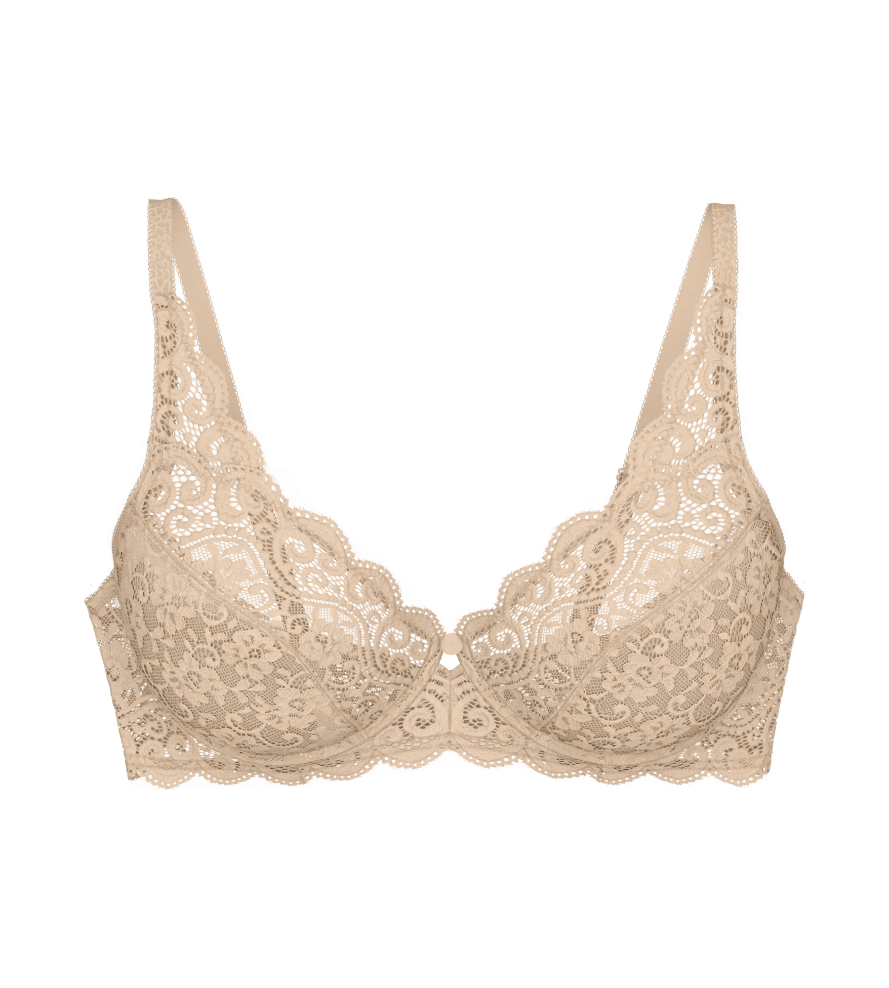 Podprsenka je vyrobená z priliehavej, mäkkej a elastickej čipky, ktorá vyzerá štýlovo a je pohodlná. - bez podšívky, s ľahkými, mäkkými, ale podpornými košíčkami - jemný tyl a čipka, kvetinový vzor - krásne zvýrazní všetky tvary a veľkosti košíčkov - k dispozícii v širšej škále veľkostí - kombinujte s vhodnými nohavičkami Materiálové zloženie: 62 % polyamid, 24 % elastan, 8 % lyocell, 6 % polyester