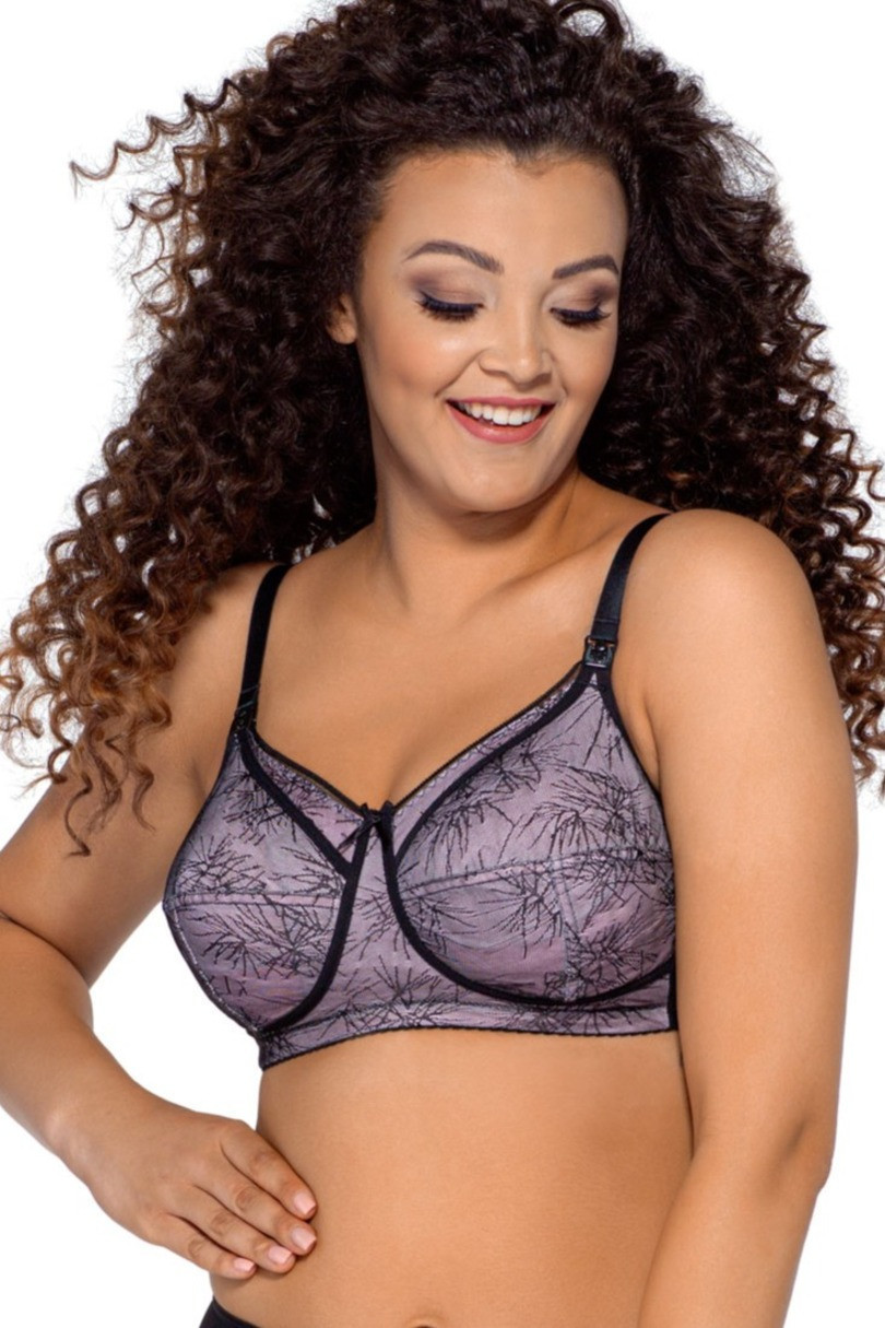 Mäkká dámska podprsenka bez kostíc. Podprsenka je vyrobená z mäkkej ružovej bavlny obšitej ľahkým čiernym materiálom s abstraktným vzorom. Model dokonale nadnáša poprsie. Rozšírený obvod udržuje poprsie na správnom a žiaducom mieste. Pohodlné klipsy uľahčujú rozopínanie a zapínanie košíčkov. Klipsy sú ozdobené obrázkom v podobe dračieho nehovorte. Materiálové zloženie: 88% polyamid, 8% bavlna, 4% elastan