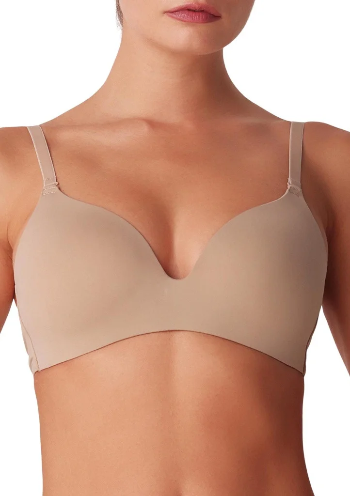 Dámska podprsenka talianskej značky Cotonella. Tento nový model podprsenky je bez kostice, navrhnutý pre maximálne pohodlie a diskrétnosť pod oblečením. Podprsenka má mäkké vypchávky pre prirodzený tvar a vysokú oporu pŕs. Spodnú časť podprsenky tvorí plochý pás bez elastických švov, ktorý zaručuje neviditeľnosť pod oblečením. Podprsenka má po stranách všité bočné kostice, ktoré zabraňujú zmenšovaniu obvodu. Ramienka majú nastaviteľnú dĺžku a sú odnímateľné, čo umožňuje rôzne štýly nosenia (klasické, krížové alebo bez ramienok). Zapínanie podprsenky má dva háčiky a tri polohy. Materiál je certifikovaný podľa normy STANDARD 100 OEKO-TEX, čo znamená, že neobsahuje škodlivé látky.Zloženie materiálu: 90 % polyamid, 10 % elastan