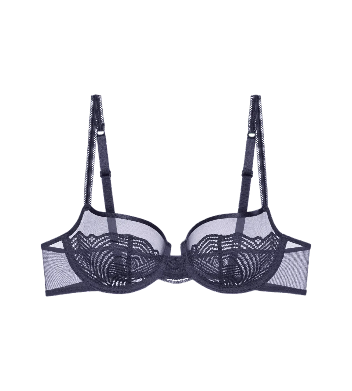 Vaše krivky budú zahalené do pôvabu v tejto čipkovanej a tylovej podprsenke s kosticami. Táto balkónová podprsenka vytvaruje vaše poprsie a poskytne vám dostatok zdvihu a podpory. Nevyztužená podprsenka s kosticami Lemovaný pás na podporu Balkónová podprsenka so strapcami z grafickej čipky Jemne všitá čipka a tyl pozdĺž vnútorného okraja košíčkov STANDARD 100 OEKO-TEX® 22.0.22419 Hohenstein HTTI 84 % polyamid, 16 % elastan