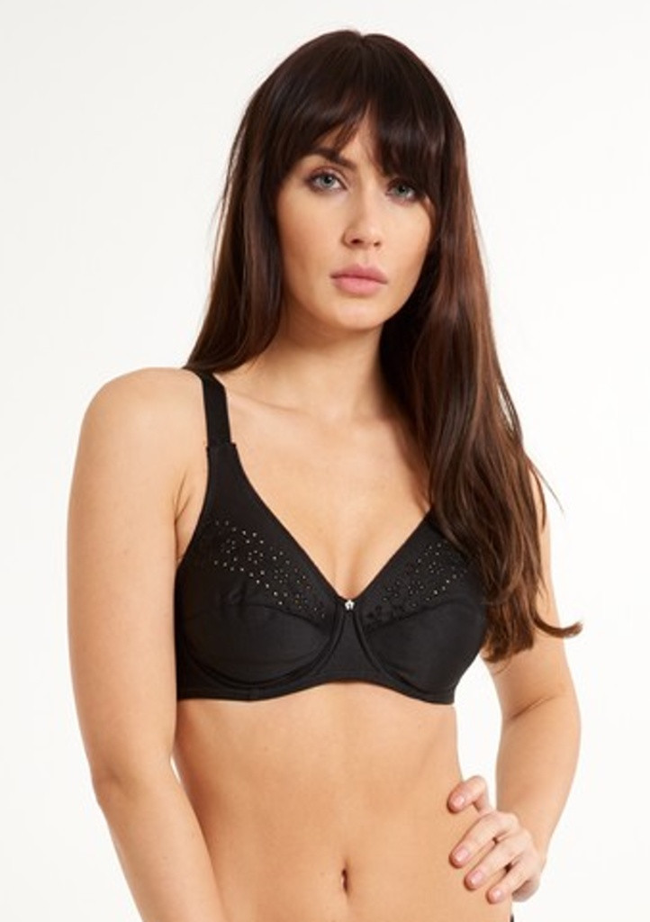 Dámska bezkosticová podprsenka pre poprsie D+ od značky LingaDore. Absolútne mäkká a poddajná podprsenka, čo podrží Vaše poprsie a zachová pohodlie a komfort pri nosení. Podprsenka má široký obvod aj stred s bočnými pružnými kosticami. Košíčky sú prestrihnuté, krásne dekorované prešitím a majú vnútorné látkovú výstuž. Širšie ramienka sú pevne všitá, ľahko dĺžkovo nastaviteľná. Zadné zapínanie je na dva háčiky a tri pozície. Materiálové zloženie: 80% polyester, 20% bavlna.