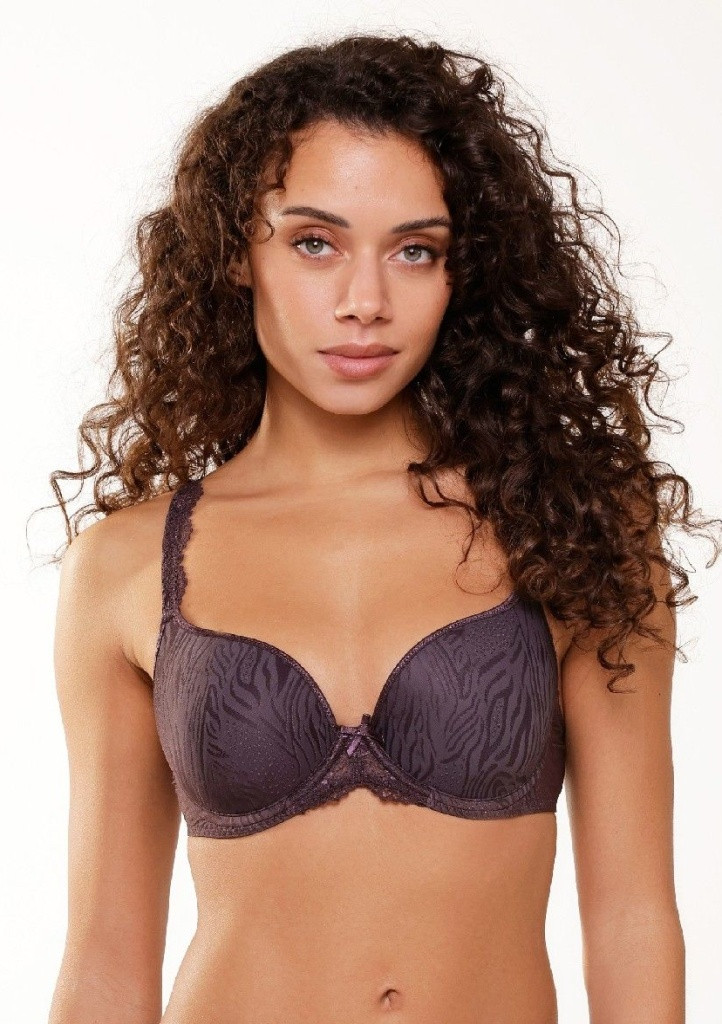 Dámska podprsenka značky LingaDore. Podprsenka je ušitá z látky s jemným vzorom a košíčky majú jemnú výstuž. V strede výstrihu je aplikovaná jemná čipka v kombinácii so saténovou mašličkou. Ramienka sú zdobené čipkou. Nastaviteľné ramienka sú neodnímateľné. Podprsenka sa zapína na dva háčiky v troch polohách. Materiálové zloženie: 57 % polyamid, 43 % elastan.