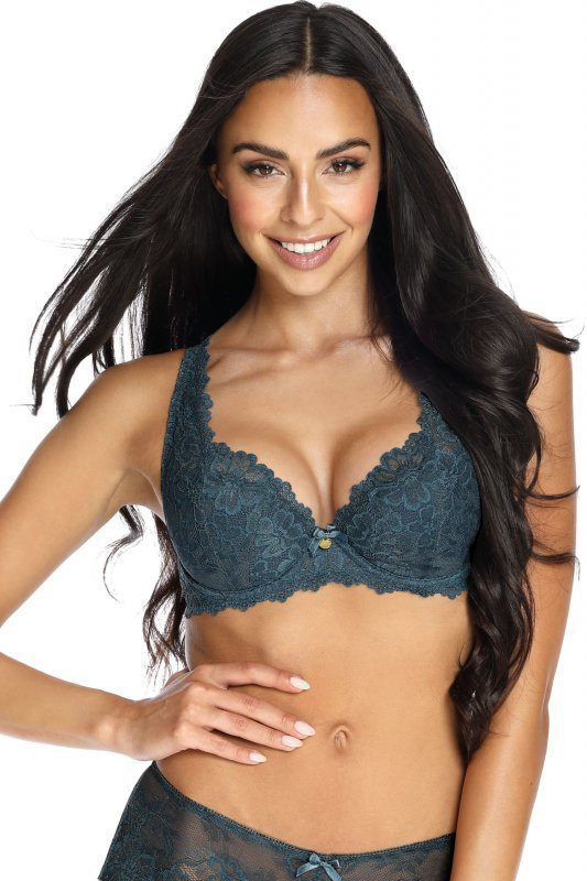 Vystužená čipkovaná podprsenka s kvetinovým motívom. Bavlnená podšívka na vnútornej strane košíčkov. Bočné časti vystužené zvislou kosticou. Ozdobné, nastaviteľné ramienka, neodopínateľné. Ideálna na nadvihnutie a udržanie poprsia. 44 % polyamid, 18 % polyester, 16 % bavlna, 16 % polyuretán, 6 % elastan.