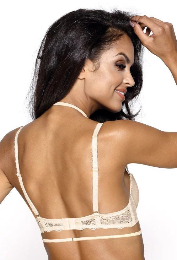 Podprsenka, ktorá na prvý pohľad zaujme svojím balkónovým strihom. Zdobí ju jemný satén s veľmi jemným vzorom. Košíčky sú rozdelené zvislým švom. Vďaka tomuto strihu sú prsia krásne nadvihnuté a odhalené. Balkón necháva vyniknúť hornú líniu pŕs, ktorú elegantne odhaľuje. Medzi košíčkami je ozdobná mašlička s príveskom. Obvod je čipkovaný, na bokoch vystužený zvislou výstužou. Ramienka sú odnímateľné. (Model sa predáva bez prídavného ozdobného remienka okolo krku)