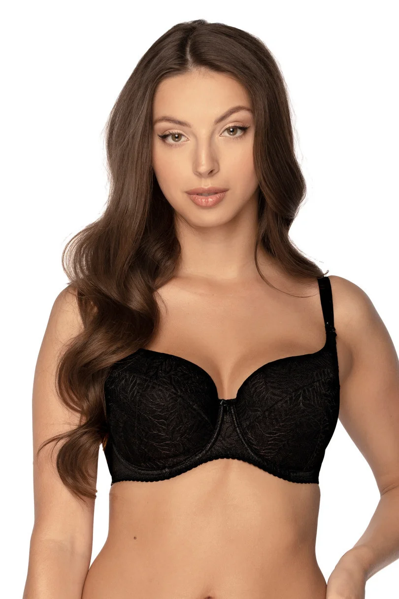 Vystužená dámska podprsenka. Vystužené košíčky sú pokryté jemnou čipkou. Ramienka je možné nastaviť, ale nemožno ich odopnúť. Podprsenka má konštrukciu na mostíku, teda zadné diely sú priamo spojené so stredom pod košíčkami. Stredne hlboké košíčky sú k mostíku došité a sú vytvarované drôtikom. Dekolt má tvar tulipánu. Rozostup medzi ramienkami je širší. V spodnej časti košíčkov je zvislý šev, vďaka ktorému model nadnáša a zväčšuje poprsie. Bočná časť košíčkov je predĺžená do ramienok a vďaka tomu sťahuje poprsie k stredu hrudníka. Zloženie: 39% polyamid, 33% polyester, 13% elastan, 12% bavlna, 3% polyuretán.