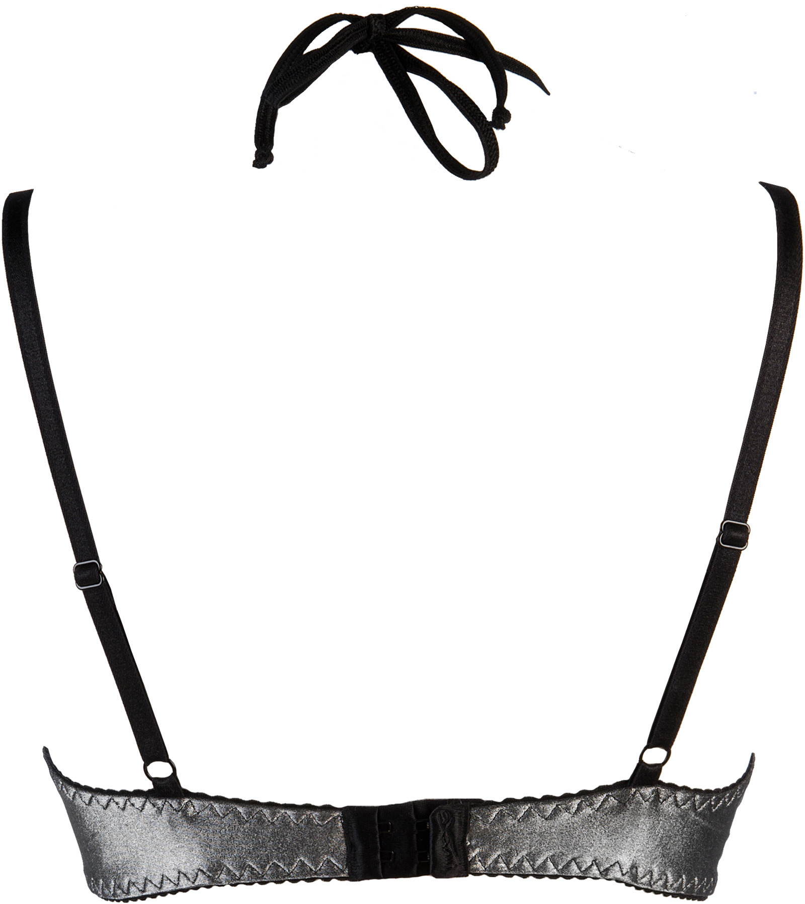 Zaujímavá podprsenka V-9481 vás prekvapí magnetickým strieborným leskom látky na košíčkoch. Ideálne, ak hľadáte oslnivú a jedinečnú spodnú bielizeň. Čierne a strieborné mašle dodávajú šatám nádych sofistikovanosti a elegancie. Model sa zaväzuje za krkom a má neodnímateľné popruhy. Štandardné nastavenia. Zloženie materiálu: polyamid 60%, bavlna 14%, elastan 10%, polyuretán 10%, polyester 6%