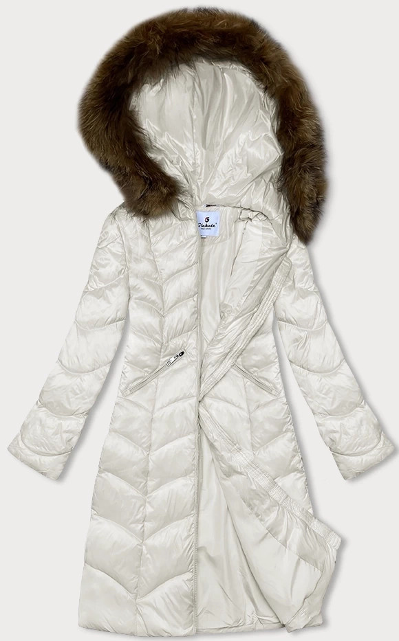 Bunda s kapucňou Bunda je vyteplená, zateplená syntetickou páperovou výplňou, má dve vrecká a zapína sa na dvojcestný zips. Model má kapucňu lemovanú kožušinou. Zatiaľ čo kapucňu nie je možné odopnúť, kožušinu je možné rozopnúť. Bunda má dĺžku nad kolená. Materiál: 100 % polyester. Bunda je veľkostne menšia ako veľkosť uvedená na štítku. Pri výbere sa riaďte rozmermi v tabuľke veľkostí.