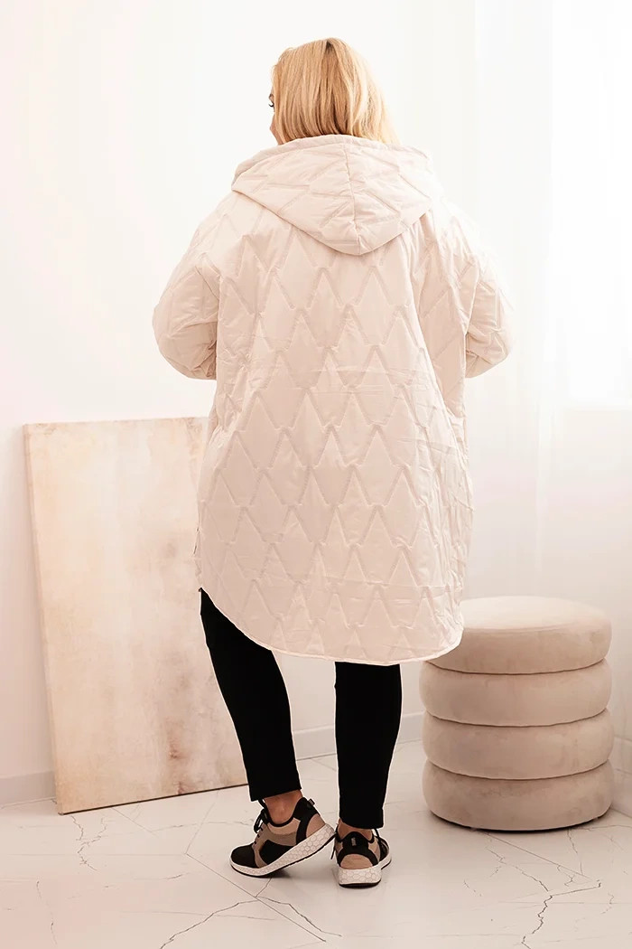 Štýlová prešívaná bunda plus size je vynikajúcou voľbou pre ženy nosiace väčšie veľkosti - od XL do 4XL. Jej voľný oversized strih zaručuje maximálne pohodlie pri nosení a dokonale sa prispôsobí postave bez toho, aby obmedzoval pohyb. Model má geometrické prešívanie, ktoré opticky zoštíhľuje siluetu, a módnu kapucňu so sťahovacou šnúrkou s leopardím vzorom. Zips a praktické náprsné vrecko podčiarkujú moderný a funkčný charakter bundy. Je to ideálny dizajn na chladnejšie dni - hodí sa k džínsom a členkovým topánkam, ako aj k športovým legínam a teniskám. Hodí sa na každodenné nosenie: na prechádzku, nákupy, do práce alebo na víkendový výlet. Veľkosť je univerzálna a bude vhodná pre dámy vo veľkosti XL, 2XL, 3XL alebo 4XL. Vlastnosti výrobku: - je vhodný na nosenie, ale aj na nosenie a údržbu: Střih: nadrozmerný, voľný strih plus size Materiál: ľahký, vetru a chladu odolný prešívaný polyester Pohodlie pri nosení: široký strih, pohodlné rukávy Funkčnosť: zips, kapucňa s módnou leopardou šnúrkou, náprsné vrecko Ďalšie detaily: ozdobná nášivka "HOPE" Štýl: mestský, každodenný, ležérny Vyrobené v Taliansku Material composition: materiál: 100% polyester Rozmery: Materiál: polyester:Rozmery uvedené nižšie sú merané na plocho +/- 1 cmAk chcete získať obvod, vynásobte šírku číslom 2 Šírka v podpazuší: 71 cm Celková dĺžka: 77 cm Dĺžka rukáva od ramena: 48 cm Šírka v spodnej časti: 77 cm