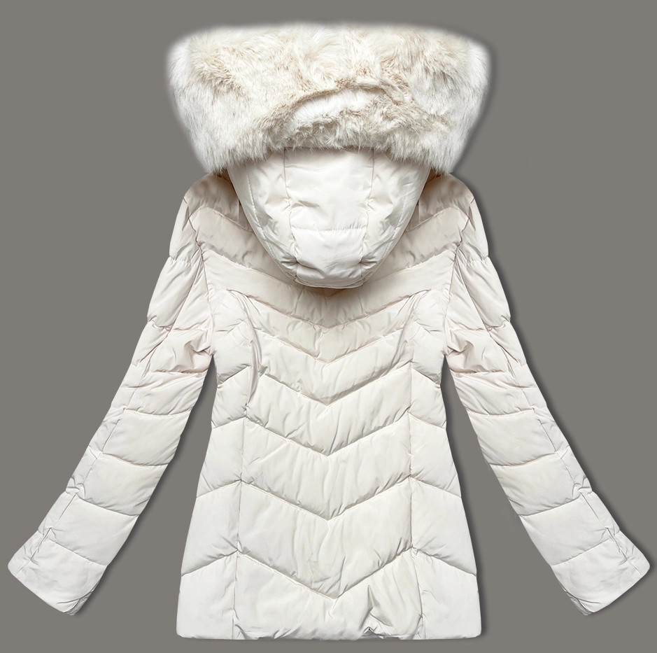 Dámska prešívaná bunda s kožušinou na kapucni S'west (B8301-26) odstíny bílé L (40)