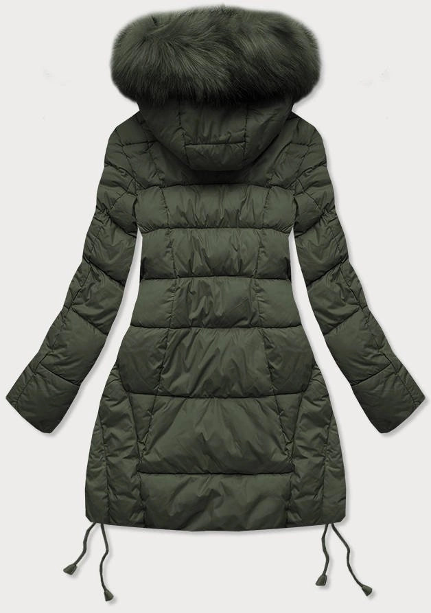 Dámska prešívaná zimná bunda v khaki farbe s kapucňou (7690) odstíny zelené S (36)