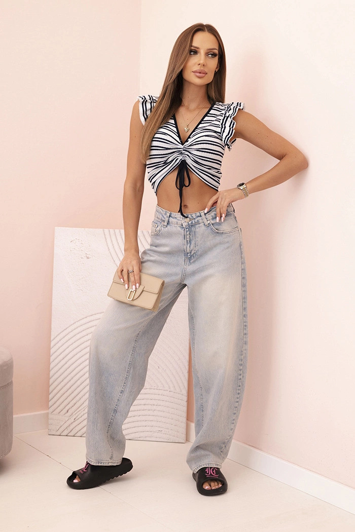 Dámska pruhovaná blúzka s volánom a volánom granátová UNI