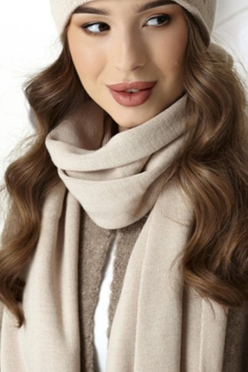 Hladká dámska šatka z vlny, príjemná na dotyk, nie hrubá, ideálna na športový a elegantný štýl. Jej veľkosť umožňuje zaujímavé viazanie. Zloženie s pridanou vlnou zaručuje teplo a pohodlie pri nosení..