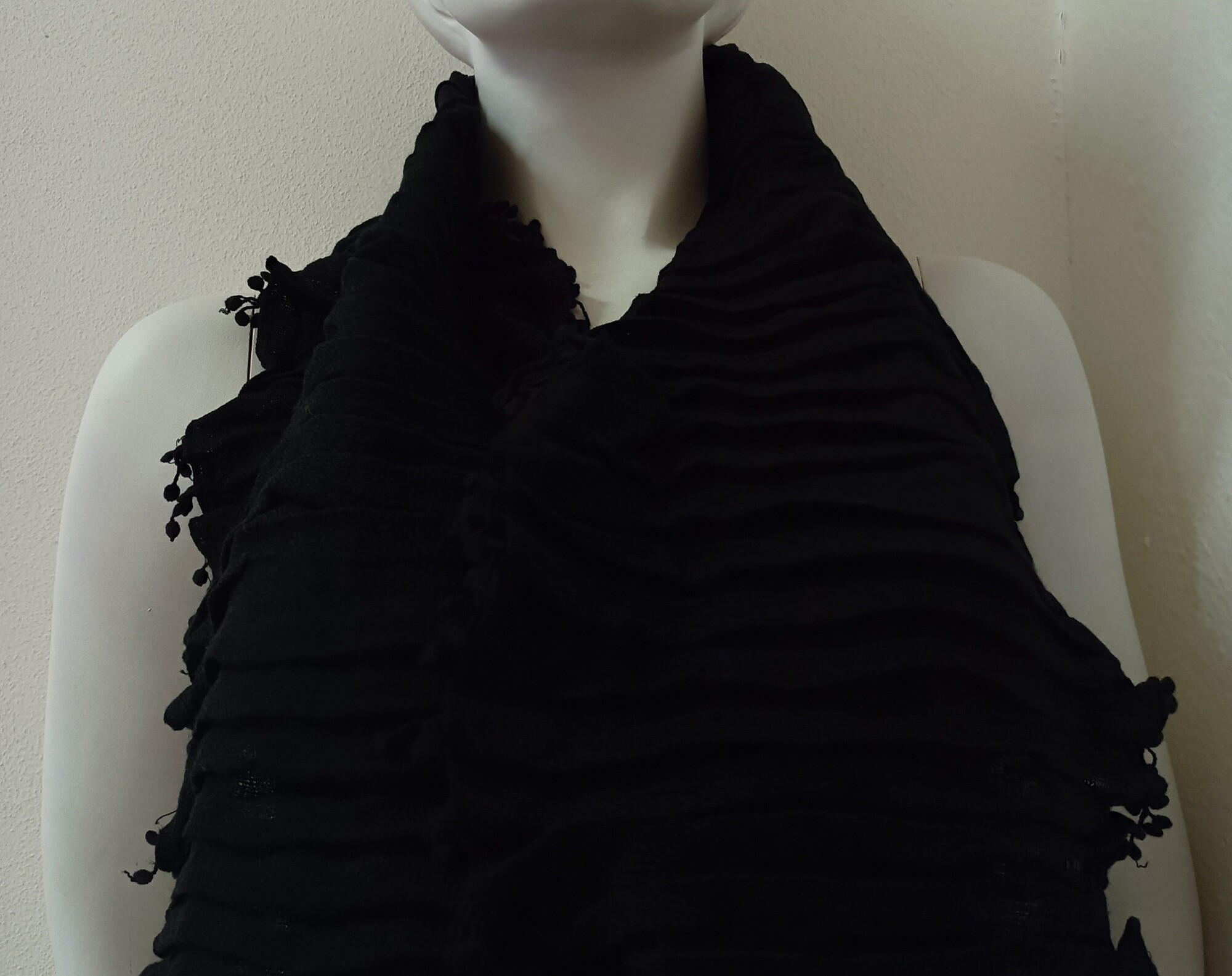 Dámska čierna šatka zdobená a prešitá jemnými elastickými vláknami. Veľmi príjemný, nehrdzavejúci materiál. 100% viskóza
