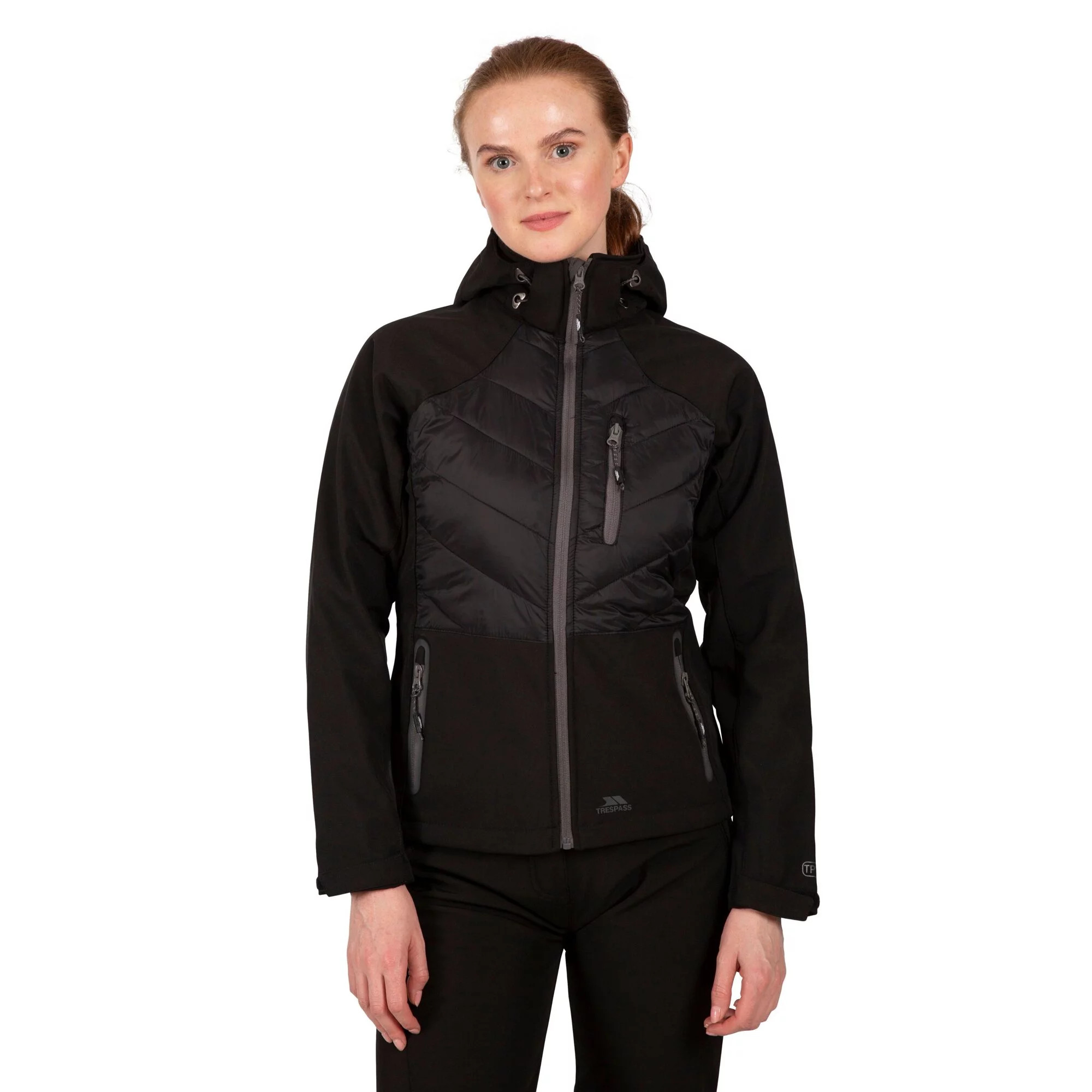 Dámska softshellová bunda Trespass Elvira s kapucňou vás ochráni pred nepriaznivými vplyvmi počasia. Materiál odolný voči vetru a vode s nepremokavými a priedušnými vlastnosťami 8000/3000 je skvelou voľbou do daždivého počasia. Oceníte praktické prvky, ako je nastaviteľná kapucňa, vrecká na zips, nastaviteľné manžety rukávov a hlavný zips s ochranou brady proti poškriabaniu, to všetko v elegantnom dizajne.nepremokavý a priedušný materiál s parametrami 8000/3000prešívané panely dodávajú bunde teplonastaviteľná kapucňa, spodný lem a manžety rukávovtri vrecká na zips