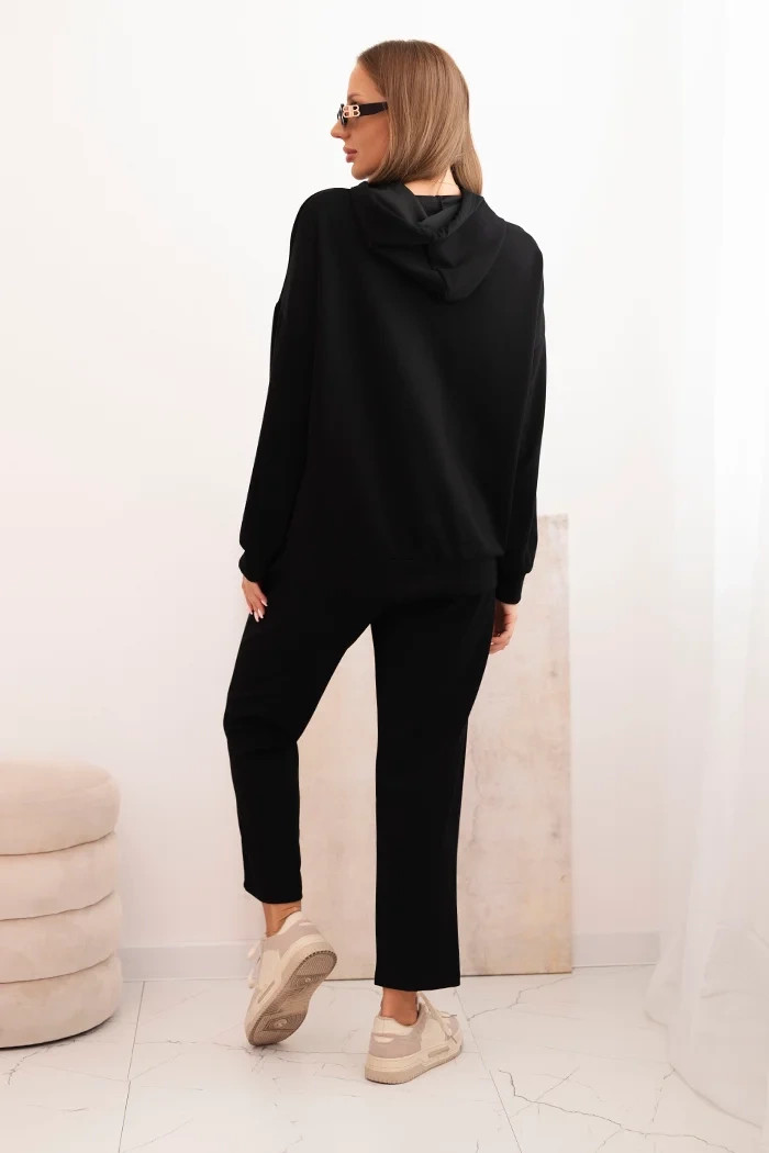 Dámska súprava maslová mikina s kapucňou a nohavice s opaskom čierna UNI