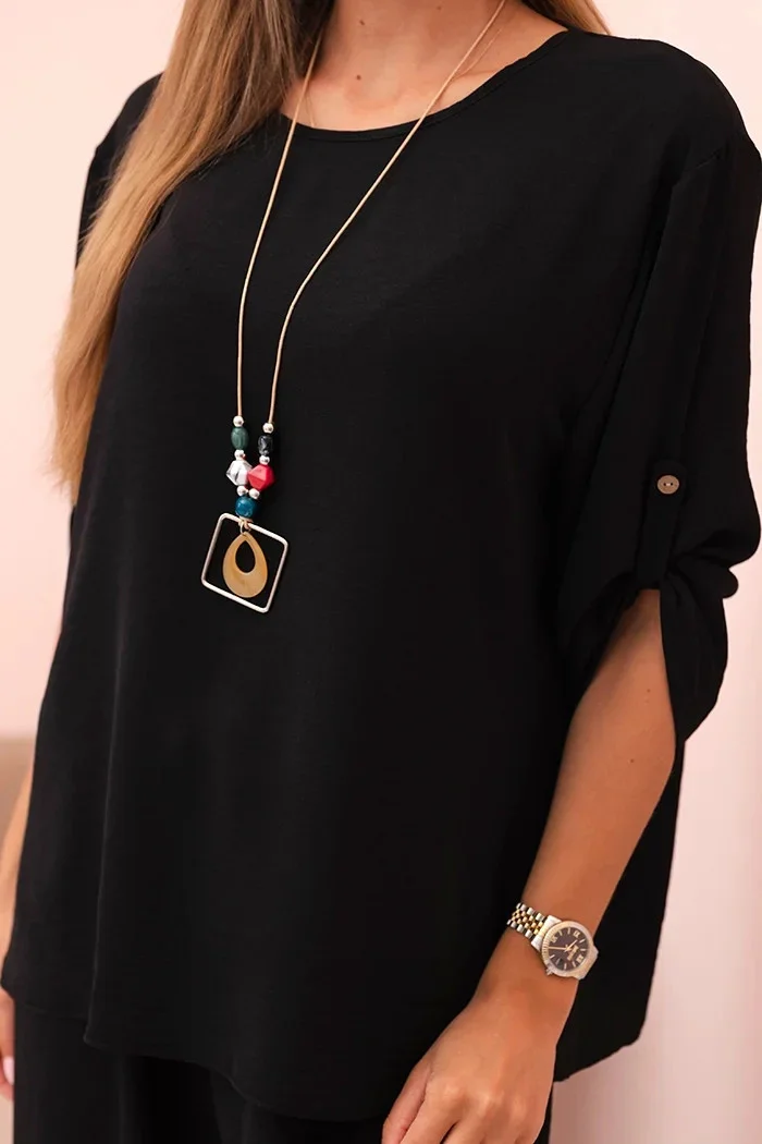 Dámska súprava s blúzkou s náhrdelníkom a širokými nohavicami čierna UNI