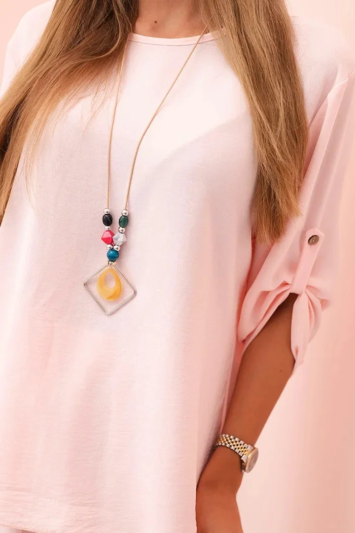 Tento štýlový dámsky komplet je skvelou voľbou pre ženy, ktoré oceňujú pohodlie a eleganciu v každodennom štýle. Komplet obsahuje voľnú blúzku s 3/4 rukávmi, ktoré sa dajú upraviť pomocou gombíka, a široké nohavice s elastickým pásom a šnúrkou na stiahnutie, ktoré zaručujú voľnosť pohybu a skvelé prispôsobenie sa postave. Komplet je doplnený originálnym náhrdelníkom, ktorý dodáva štýlu charakter a osobitý akcent. Komplet je ideálny na bežné nosenie, ako aj na spoločenské stretnutia, prechádzky alebo voľné dni v práci. Vďaka univerzálnemu strihu a neutrálnym farbám ho ľahko zladíte s obľúbenými doplnkami a obuvou. Veľkosť je univerzálna a bude vhodná pre ženy veľkosti S, M alebo L. Vlastnosti výrobku: Vhodný na nosenie v šatách, v ktorých sa dá nosiť: Strih: voľná blúzka, široké nohavice s elastickým pásom a šnúrkou na stiahnutie Materiál: mäkký, elastický, šetrný k pokožke Pohodlie: poskytuje voľnosť pohybu a pohodlie počas celého dňa Funkčnosť: 3/4 rukáv s gombíkom, regulácia v páse Príslušenstvo: súčasťou balenia je ozdobný náhrdelník Štýl: ležérny, každodenný, ideálny na rôzne príležitosti Vyrobené v Taliansku Materiálové zloženie:: materiál: 95 % polyester, 5 % elastanu Nižšie uvedené rozmery sú merané na plocho +/- 1 cmNa zistenie obvodu vynásobte šírku 2x Rozmery: Rozmery: 1,5 x 1,5 x 1,5 x 1,5 cm: Šírka v podpazuší: 58 cm Celková dĺžka: 68 cm Dĺžka rukávu od podpazušia: 28 cm Nohavice: Šírka v páse: 32 cm / po rozopnutí: 48 cm Celková dĺžka: 103 cm Dĺžka od rozkroku: 70 cm Šírka v oblasti bokov: 63 cm