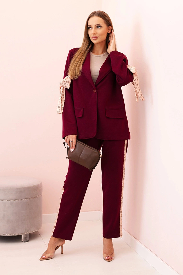 Dámska súprava z viskózy - sako s klopami a nohavice s lampasom slivka UNI