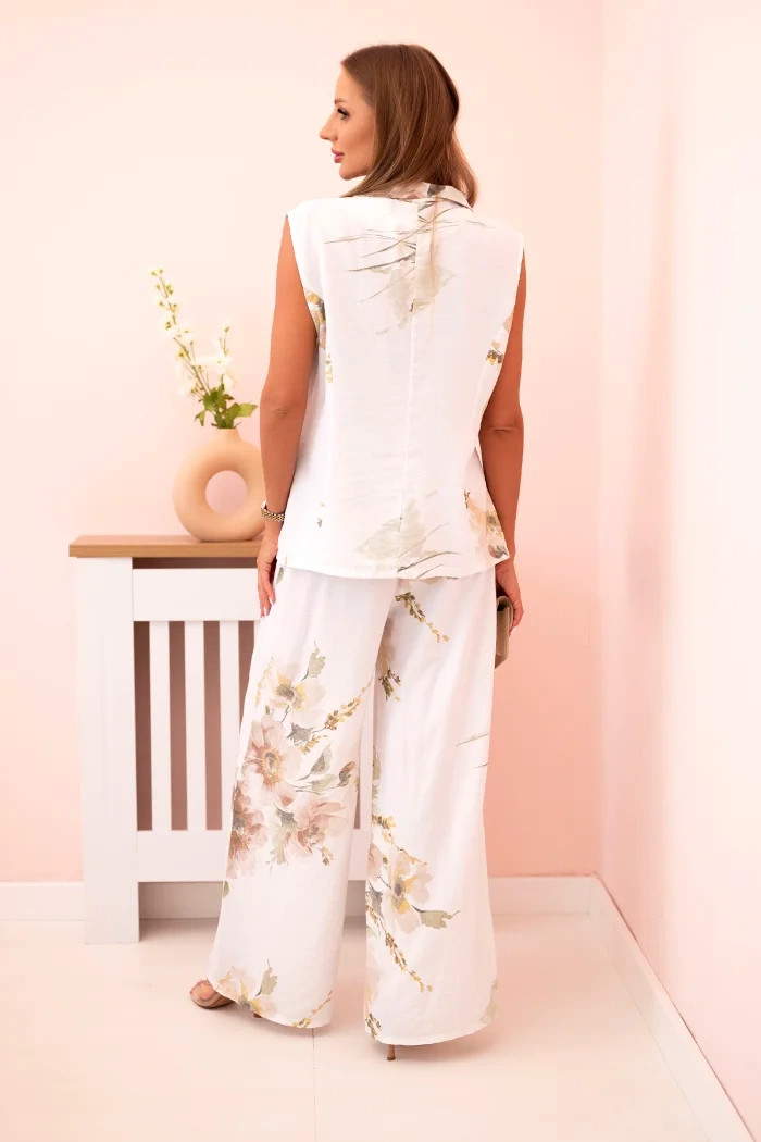 Tento dámsky komplet je dokonalou ponukou pre ženy, ktoré si cenia ľahkosť, eleganciu a prírodné materiály. Skladá sa z vesty bez rukávov s klasickým golierom a gombíkmi a dlhých nohavíc so širokými nohavicami. Komplet je vyrobený z vysokokvalitnej viskózy, ktorá zaručuje maximálne pohodlie pri nosení, priedušnosť a jemnosť na pokožke. Jemný kvetinový vzor dodáva ženský šarm a je ideálny na každodenné nosenie, ako aj na špeciálne príležitosti - od letných stretnutí až po štýlové výlety. Veľkosť je univerzálna a bude vhodná pre dámy vo veľkosti S, M alebo L. Vlastnosti výrobku: Vhodné na nosenie v šatách, ktoré sa dajú nosiť v šatách: Střih: elegantná vesta so zapínaním na gombíky + široké nohavice Štýl: romantický, kvetinová potlač Pohodlie pri nosení: elastický pás na nohaviciach Funkčnosť: ideálne na leto, do práce, na prechádzky alebo na dovolenku Detaily: klasický golier, voľný strih Vyrobené v Taliansku Zloženie materiálu: Taliansko, Taliansko, Taliansko, Taliansko, Taliansko, Taliansko, Taliansko, Taliansko, Taliansko, Taliansko: materiál: 100% viskóza Nižšie uvedené miery sú merané na plocho +/- 1 cmŠírku vynásobte 2, aby ste získali obvodovú mieru Rozmery vesty: Šírka pod pazuchami: 50 cm Celková dĺžka: 69 cm Rozmery kalhot: Šírka v páse: 34 cm / po natiahnutí: 50 cm Celková dĺžka: 107 cm Šírka nohavíc od rozkroku: 73 cm Šírka v oblasti bokov: 57 cm