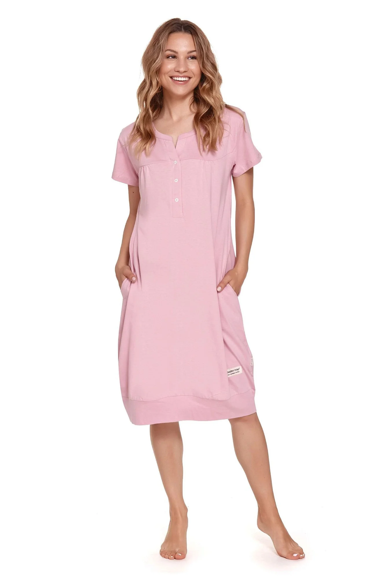 Dámske tehotenské tričko 4348 fialové Doctornap - svetlo fialové - vyrobené z kvalitnej bavlny - krátke rukávy - zapínanie na patentky - vrecká na bokoch - ideálne pre tehotné a dojčiace ženy - certifikát OEKO-TEX Standard 100 Zloženie materiálu: 100% bavlna