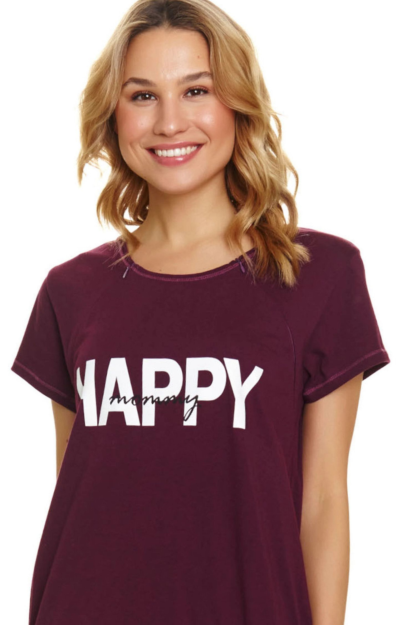 Dámske tehotenské tričko 9504 wine Doctornap - bordová farba - vyrobené z kvalitnej bavlny - krátke rukávy - zdobené potlačou na prednej strane - vrecká na bokoch - ideálne pre tehotné a dojčiace ženy - hypoalergénne vlastnosti - certifikát OEKO-TEX Standard 100 Zloženie materiálu: 100% bavlna