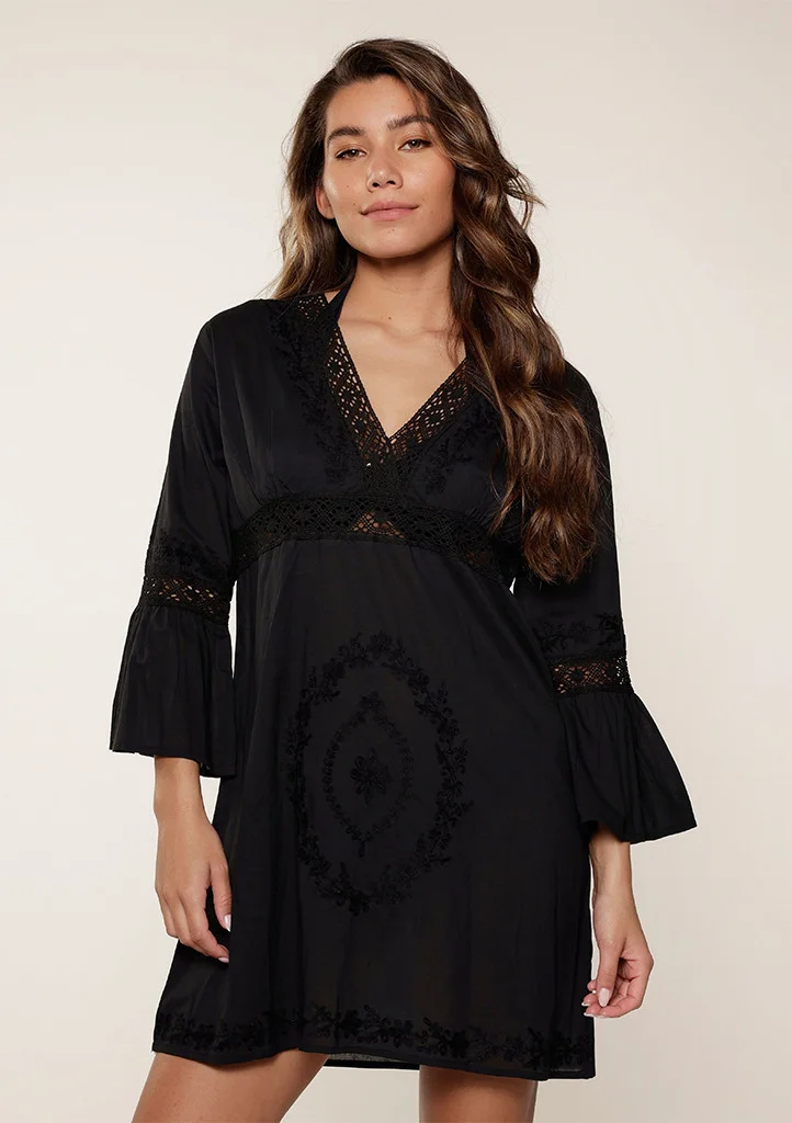 Tunika značky LingaDore je ideálnou voľbou pre uvoľnený a štýlový vzhľad. Tento boho model je vyrobený zo 100 % bavlny, čo zaručuje pohodlie počas celého dňa. Má výstrih do V a rozšírené rukávy, ktoré jej dodávajú ľahkosť a vzdušnosť. Detaily prešívania zvýrazňujú jej jedinečný dizajn. Tunika je ideálna ako ľahké šaty cez plavky, takže je skvelou voľbou na relax pri vode, na pláži alebo pri bazéne. Vďaka svojej všestrannosti je ideálna aj na farebný, ležérny vzhľad počas teplých letných dní. 100 % bavlna.