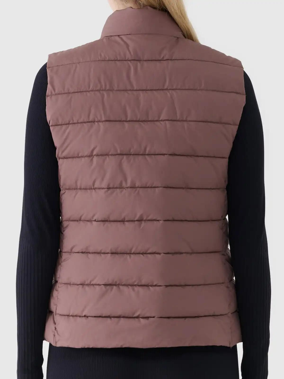 Dámska prešívaná vesta značky 4F je ideálnou voľbou na prechodné obdobia a miernejšie zimné dni, keď oceníte ľahkú a praktickú dodatočnú vrstvu. Má regular strih, ktorý sa pohodlne prispôsobí postave a zároveň umožňuje voľnosť pohybu. Syntetická výplň zaisťuje optimálny tepelný komfort a ľahkosť bez toho, aby vesta zbytočne zaťažovala. Vysoký stojačik chráni krk pred vetrom a chladom, zatiaľ čo hlavný zips po celej dĺžke umožňuje jednoduché obliekanie a reguláciu teploty. Na prednej strane sú dve bočné vrecká, ktoré poskytujú priestor na uloženie drobných predmetov alebo na udržanie rúk v teple. Decentné logo 4F na hrudi podčiarkuje športový a moderný vzhľad tohto modelu.
