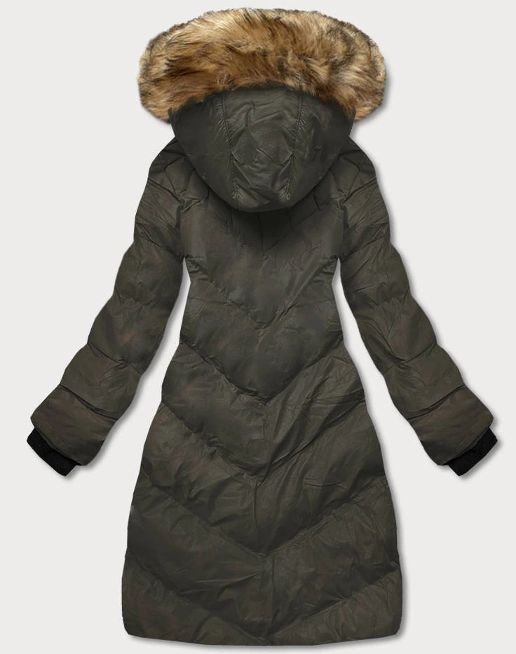 Dámska zimná bunda v army farbe s ozdobným prešívaním (5m730-136) odstíny zelené S (36)