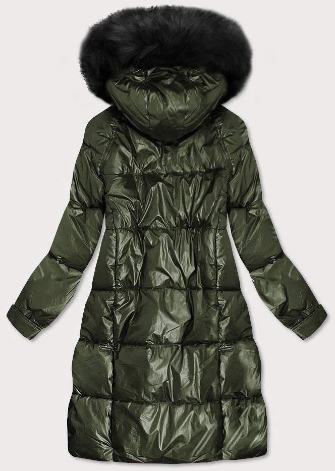 Domov Oblečenie a móda Dámske oblečenie Dámske bundy a kabáty Dámska zimná metalická bunda v khaki farbe s kapucňou (8295) odstíny zelené M (38)