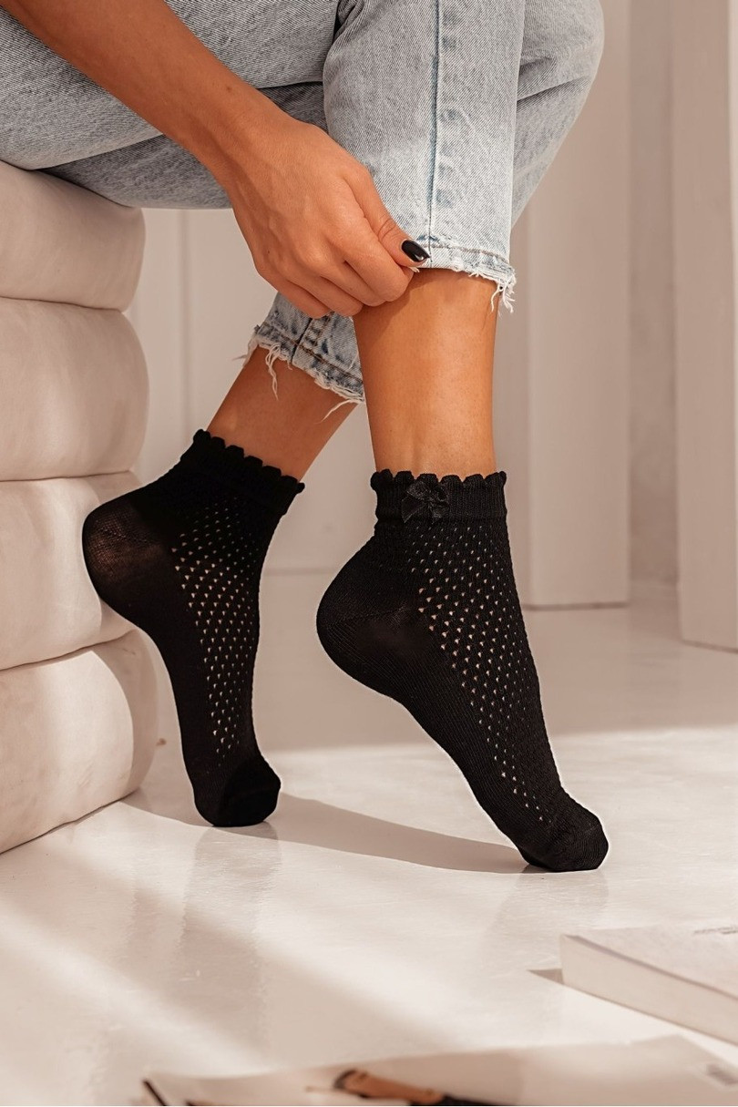 Dámske ponožky ozdobným lemom TRENDY COTTON SOCKS Bellinda čierna