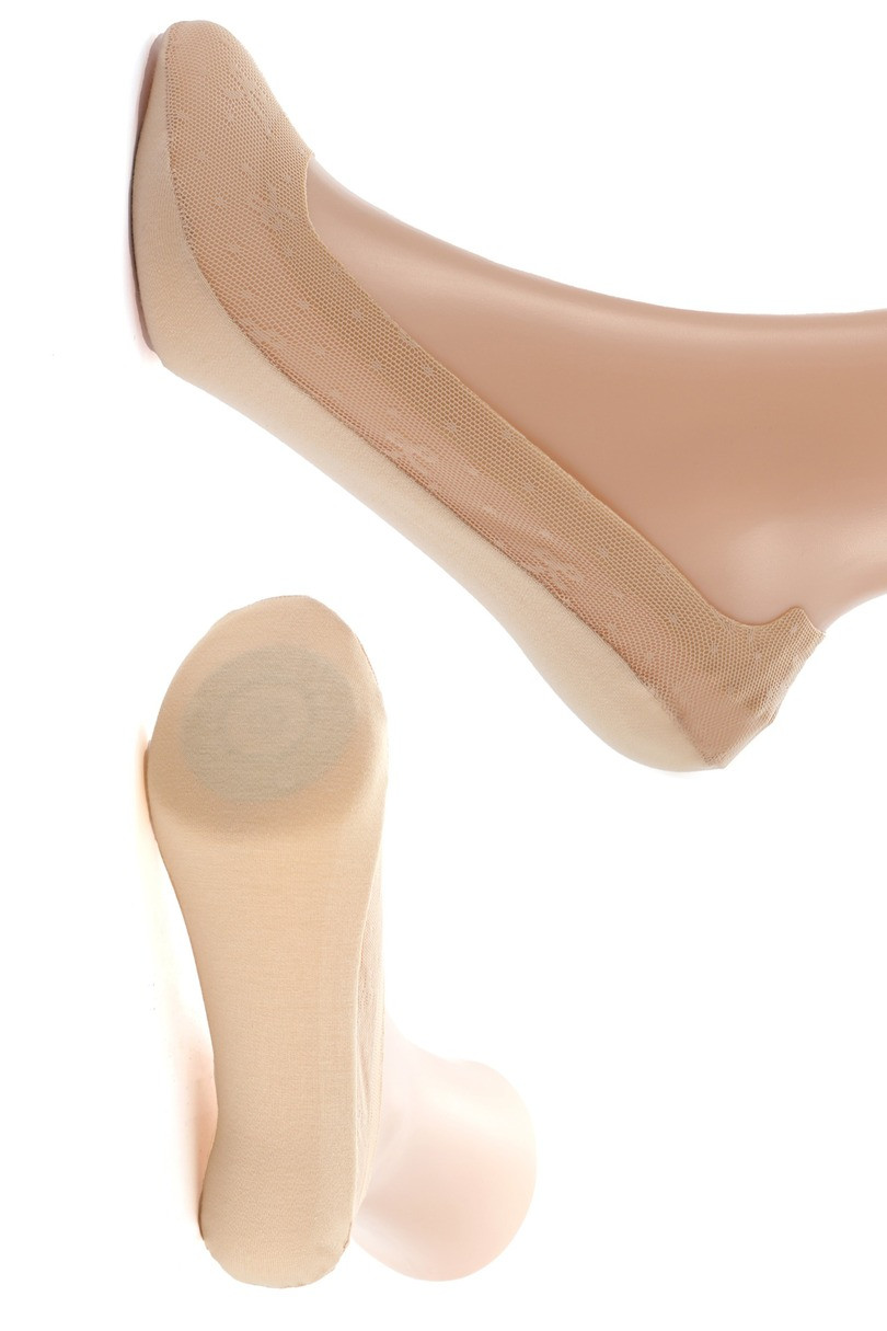 Dámske balerínky ST-63 od značky Be Snazzy sú kombináciou elegancie a pohodlia. Sú vyrobené z kvalitného polyamidu (88 %) a elastanu (12 %), sú mimoriadne pružné a dokonale sa prispôsobia nohe. Ich čipkovaný vzorovaný dizajn im dodáva jemný, ženský charakter, vďaka čomu sa dokonale hodia k elegantným aj ležérnym outfitom.Vďaka silikónovým vložkám balerínky neskĺzavajú z nohy, čo zaručuje stabilitu a pohodlie počas nosenia. Spodná časť je vyrobená z
