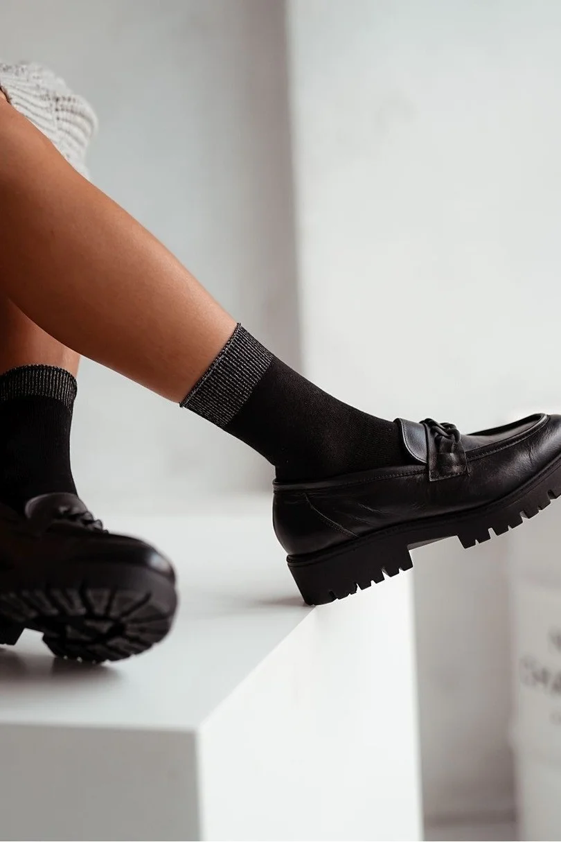 Bavlnené dámske ponožky s lurexovým rebrovaním pre ľudí, ktorí ocenia pohodlie. Sú ideálne na každodenný štýl..