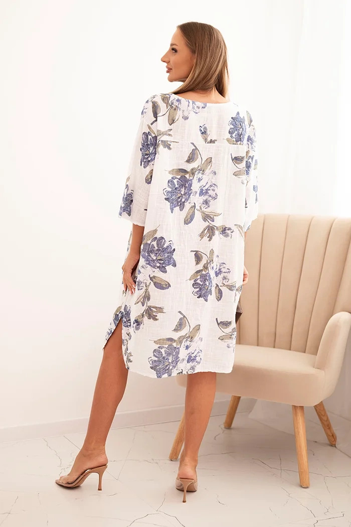 Domov Oblečenie a móda Dámske oblečenie Dámske šaty Dámske bavlnené šaty s kvetinovým vzorom a 3/4 rukávmi biele UNI
