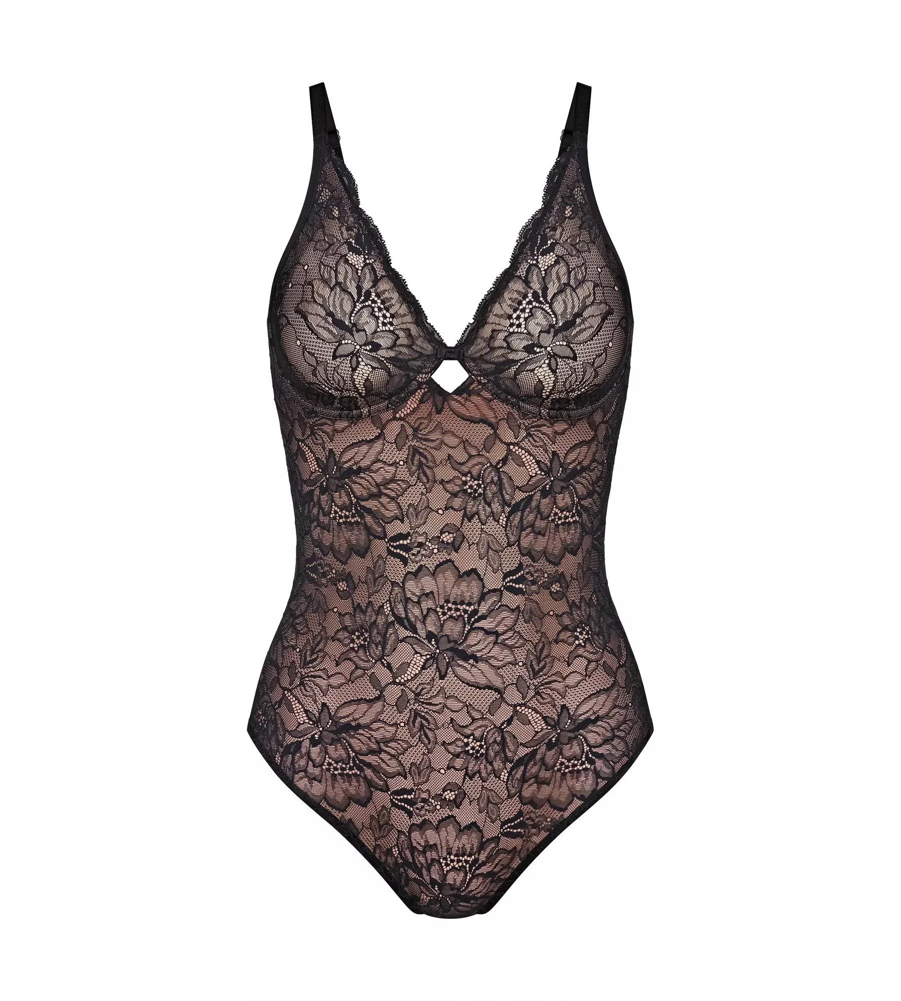 Dámske body v čiernej farbe- vyrobené výhradne z elastickej čipky- predná časť a košíčky sú podšité béžovou sieťovinou- mäkké košíčky- neodnímateľné, nastaviteľné ramienka- ozdobné ramienka- pohodlné zapínanie na háčiky v rozkroku- bavlnený klin pre pohodlie a komfortMateriál: 73% Polyamid, 27% Elastan