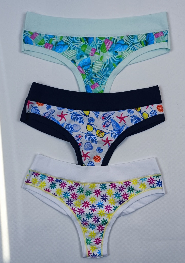 Dámske bavlnené brazilky od značky Lovelygirl. Brazilky sú jemné na dotyk, hladké, na prednej strane s potlačou. Po obvode je pohodlný širší elastický pás a vo vnútornej časti je všitý bavlnený klin pre pohodlné nosenie. Farba nohavičiek bude vybraná náhodne alebo môžete napísať farbu do poznámky. Cena je za jeden kus. Sú balené v krabičke. Materiálové zloženie: 90% bavlna, 10% elastan.