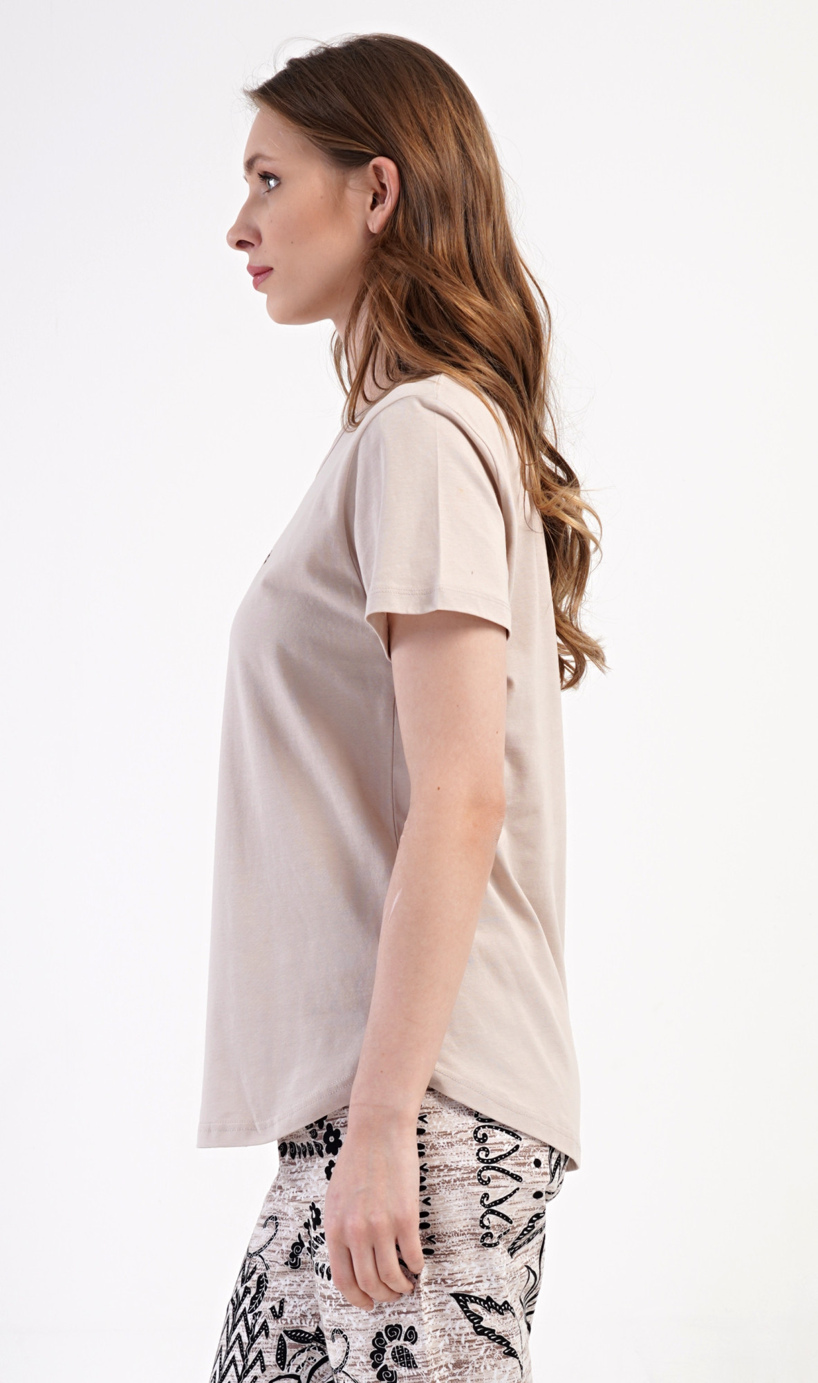 Dámské bavlněné kapri pyžamo Elena. Dámské pyžamo se skládá z trička s krátkým rukávem a tříčtvrtečních kalhot. Tričko s kulatým výstřihem zdobí na hrudi obrázek vážky. Kalhoty s potiskem listů a květů mají v pase gumu a šňůrku na stažení, jsou bez kapes. Použitý bavlněný materiál je příjemný a poddajný na dotek. Pokyny pro údržbu: - 100% bavlna- lze prát v pračce při teplotě do 30°- nesušit v sušičce- žehlit z rubu do 110°- nepoužívat bělící prostředky- nečistit chemicky Míry naměřené na výrobku: 4093124474 Elena 1XL 2XL 3XL 4XL obvod hrudníku 110 114 118 122 délka trika 73 73 73 73 pas 82-94 84-96 86-98 88-100