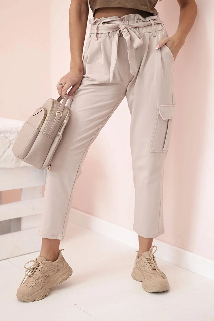 Tieto štýlové dámske nohavice s vysokým pásom v sebe spájajú pohodlie a mestský štýl. Sú vyrobené zo strečovej bavlny, dokonale sa prispôsobia postave a poskytujú pohodlie počas celého dňa. Na bokoch majú praktické cargo vrecká, ktoré im nielen dodávajú charakter, ale sú aj veľmi funkčné. Ďalšou výhodou je látkový pás, ktorý krásne zvýrazňuje ženskú postavu. Model je ideálny na každý deň - do práce, do školy alebo na nákupy. Vďaka univerzálnemu strihu a klasickému štýlu sa ľahko kombinujú so športovou mikinou aj elegantným tričkom. Sú nevyhnutnou súčasťou šatníka každej ženy, ktorá si cení štýl a pohodlie. Veľkosť je univerzálna a vhodná pre ženy vo veľkostiach S, M alebo L. Vlastnosti výrobku: - Vhodné na nosenie v šatách, ktoré sa dajú nosiť v šatách: Vhodné pre ženy s vysokým pásom Cargo štýl s veľkými vreckami na bokoch Opasok na zaväzovanie v páse Elastický pás, ktorý sa prispôsobí postave Pohodlný materiál, ktorý neobmedzuje pohyb Vyrobené v Turecku Zloženie materiálu: materiál: 90 % bavlna, 10 % elastan Nižšie uvedené rozmery sú merané na plocho +/- 1 cmpre získanie obvodu vynásobte šírku krát 2 Rozmery: Šírka v páse: 32 cm (po natiahnutí: 50 cm) Šírka v oblasti bokov: 52 cm Celková dĺžka: 93 cm Vnútorná dĺžka nohavíc: 67 cm