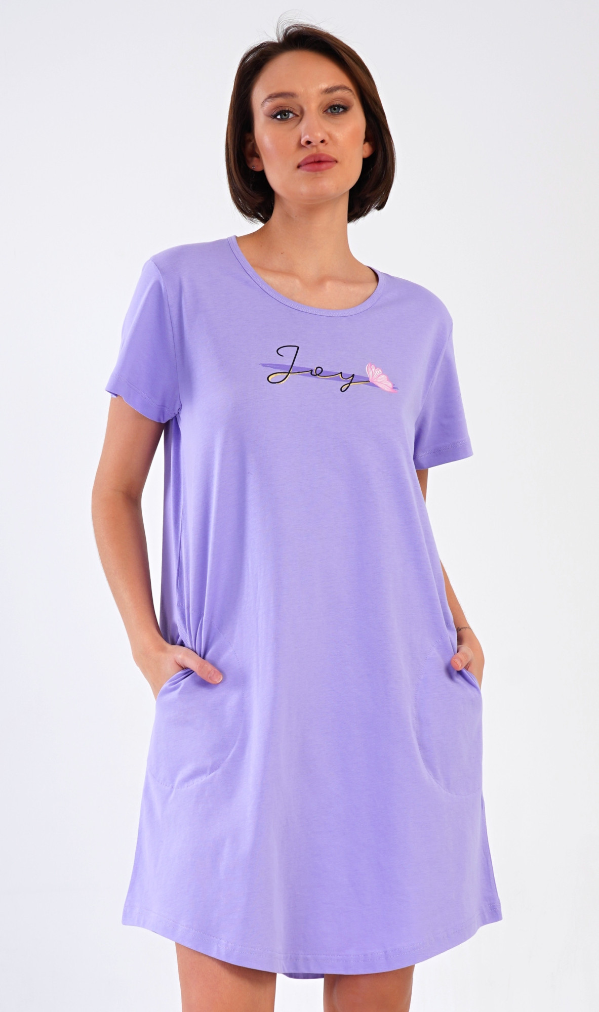 Dámské bavlněné domácí šaty s krátkým rukávem Barbora. Domácí jednobarevné šaty s kulatým výstřihem a kapsami zdobí na hrudi obrázek květu a nápys JOY. Použitý bavlněný materiál je příjemný a poddajný na dotek. Šaty jsou pohodlné, využijete je téměř při všech volnočasových aktivitách. Jsou vhodné na spaní i na denní nošení. 4100900000 Barbora 1XL 2XL 3XL 4XL obvod hrudníku 118 124 130 136 obvod boky 124 130 136 142 délka 95 96 97 98