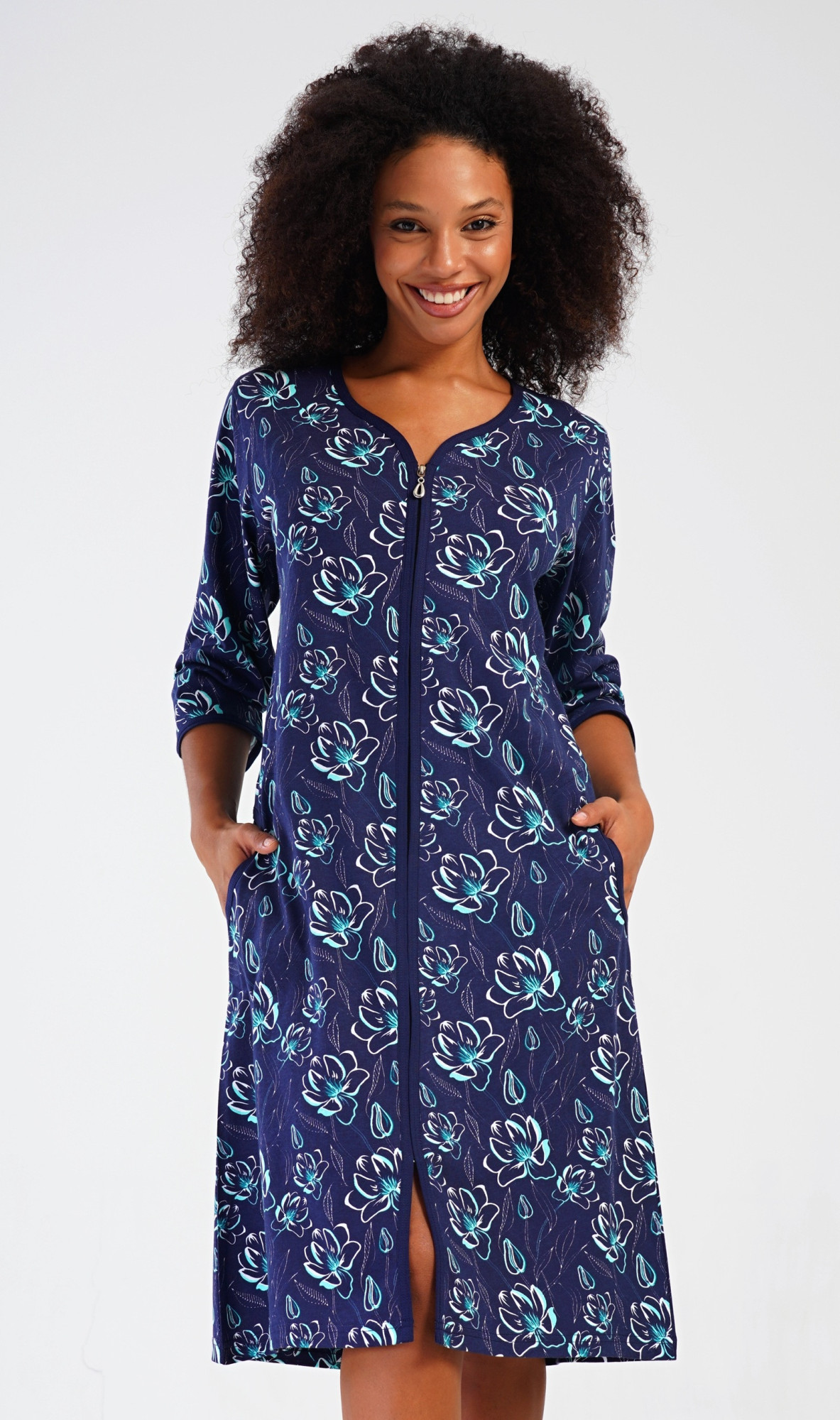 Dámské bavlněné domácí šaty s tříčtvrtečním rukávem Lekníny. Pohodlné rozepínací šaty v příjemné délce pod kolena využijete téměř při všech volnočasových aktivitách. Mají praktické kapsy a zapínání na zip. Šaty jsou potištěny lekníny. Použitý bavlněný materiál je příjemný a poddajný na dotek. Pokyny pro údržbu: - 100% bavlna - lze prát v pračce při teplotě do 30° - nesušit v sušičce - žehlit z rubu do 110° - nepoužívat bělící prostředky - nečistit chemicky Míry naměřené na výrobku: 4053694868 Lekníny 1XL 2XL 3XL 4XL obvod hrudníku 120 124 128 132 obvod boky 126 130 134 138 délka 97 98 99 100