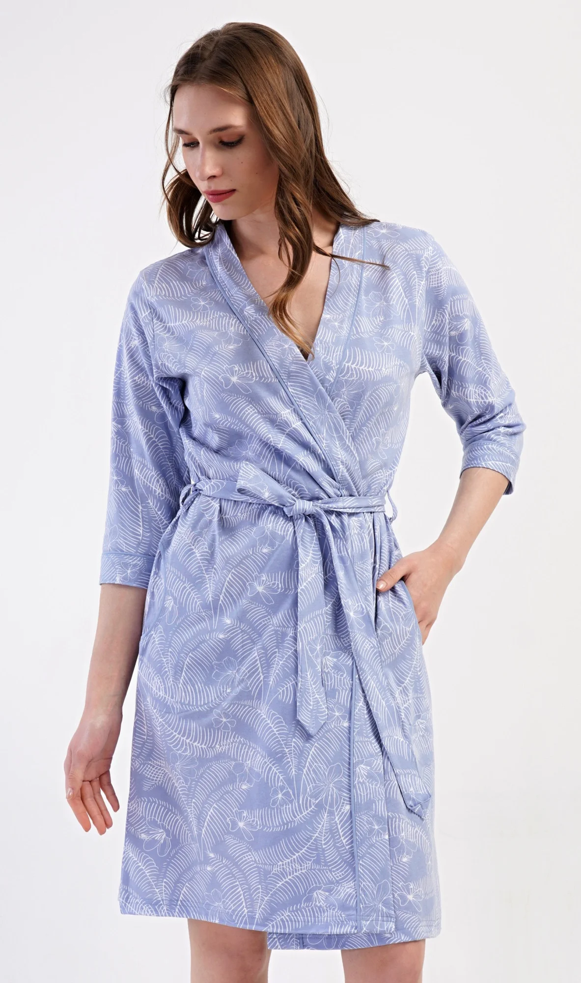 Dámský krátký bavlněný župan Lenka. Dámský župánek v délce pod kolena je potišten květy a listy. Župan má pásek ke stažení a praktické kapsy. Použitý bavlněný materiál je příjemný a poddajný na dotek, saje a oceníte ho i po koupeli. Pokyny pro údržbu: - 100% bavlna- lze prát v pračce při teplotě do 30°- nesušit v sušičce- žehlit z rubu do 110°- nepoužívat bělící prostředky- nečistit chemicky Míry naměřené na výrobku: 4083231584 Lenka M L XL XXL obvod hrudníku 100 104 108 112 obvod boky 112 116 120 124 délka županu 100 100 100 100