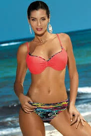 Krásne dvojdielne plavky ideálne na plávanie aj opaľovanie - tvarované košíčky - nastaviteľné, neodnímateľné ramienka - zapínanie na sponu na chrbte - klasické vzorované nohavičky - materiál rýchlo schne a chráni pred UV žiarením - plavky majú krásne farby - taliansky materiál je odolný voči vyblednutiu 80 % polyamid, 20 % elastan