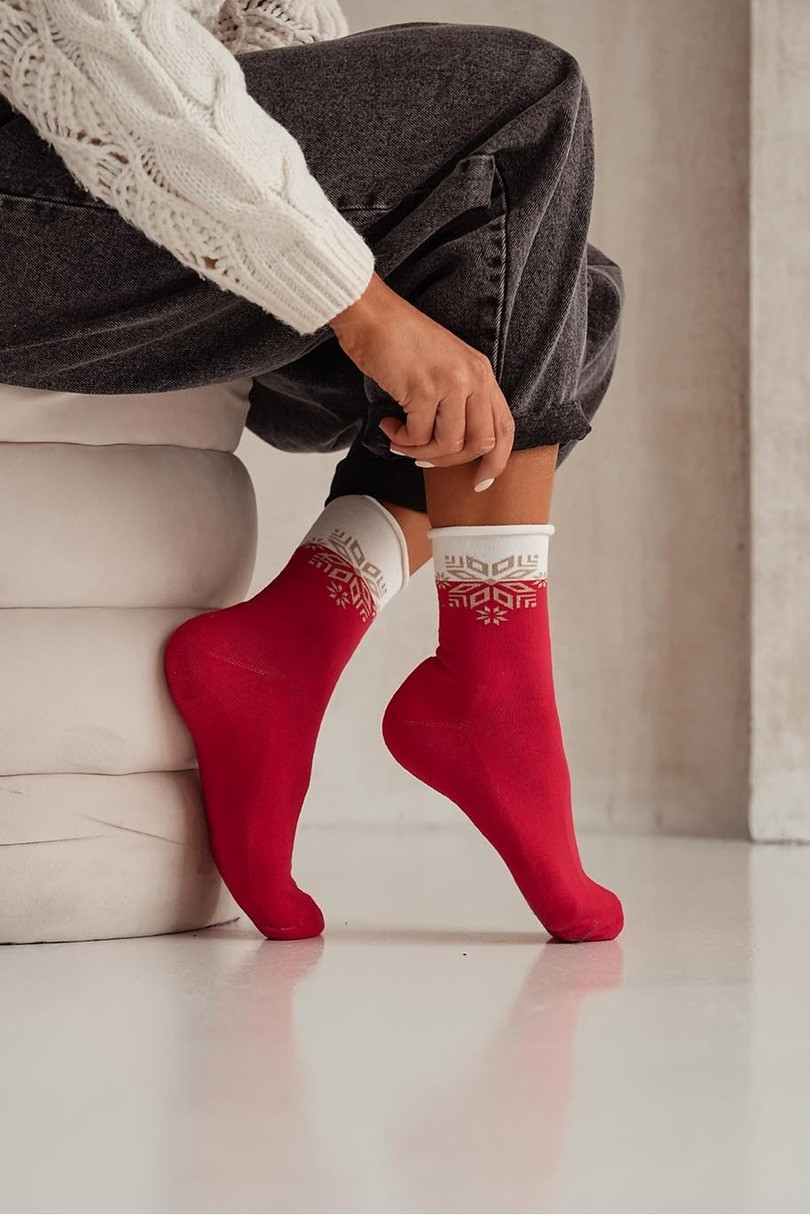 DÁMSKE FROTÉ PONOŽKY UNIKÁTNE S HVIEZDOU 0071.007 Červená 38-41