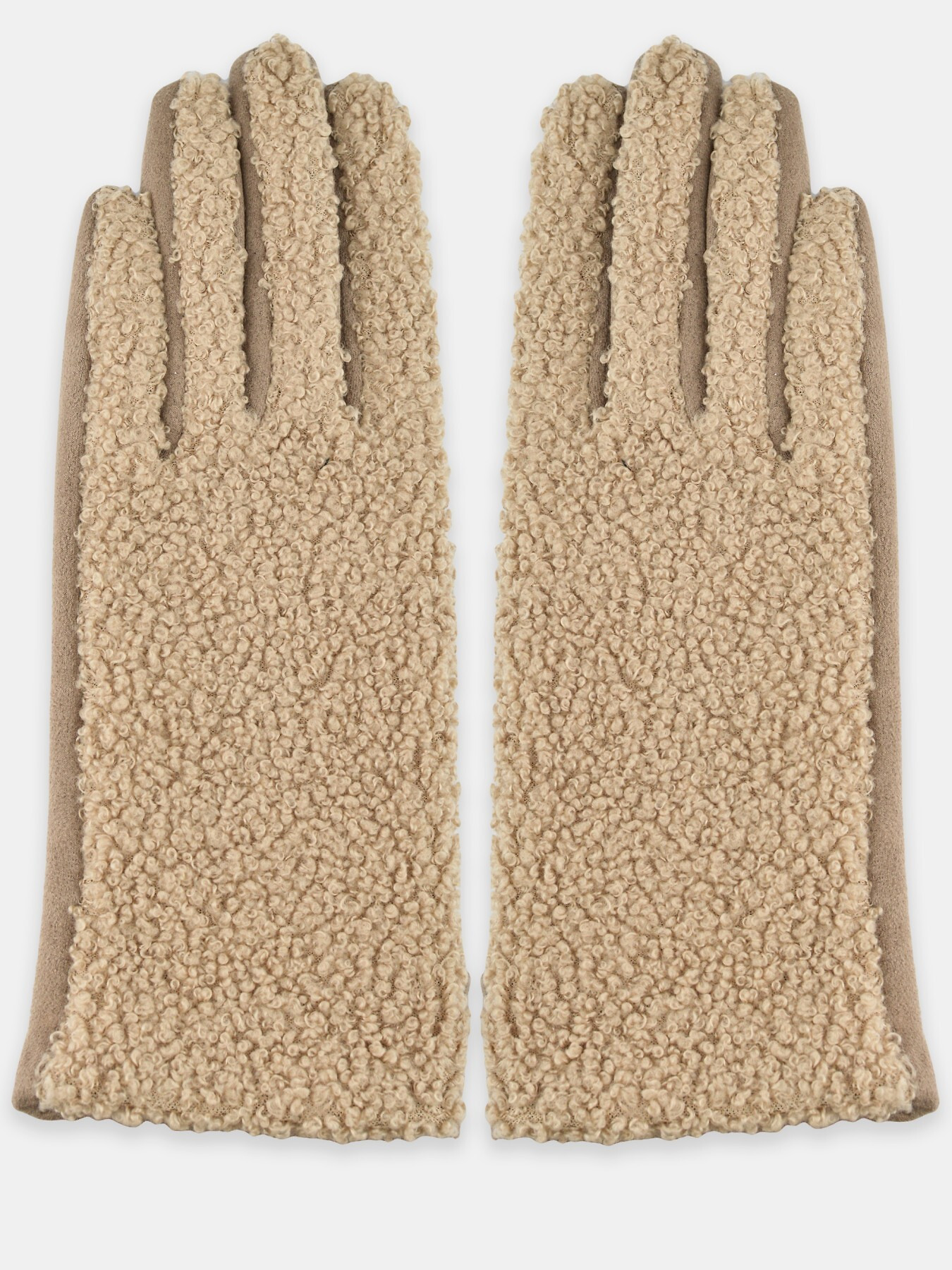 Dámske rukavice - päťprstové - mäkká a nadýchaná bucľová pletenina - imitácia semišu na vnútornej strane dlane - pre dotykové obrazovky Zloženie: 90 % polyester, 10 % elastan