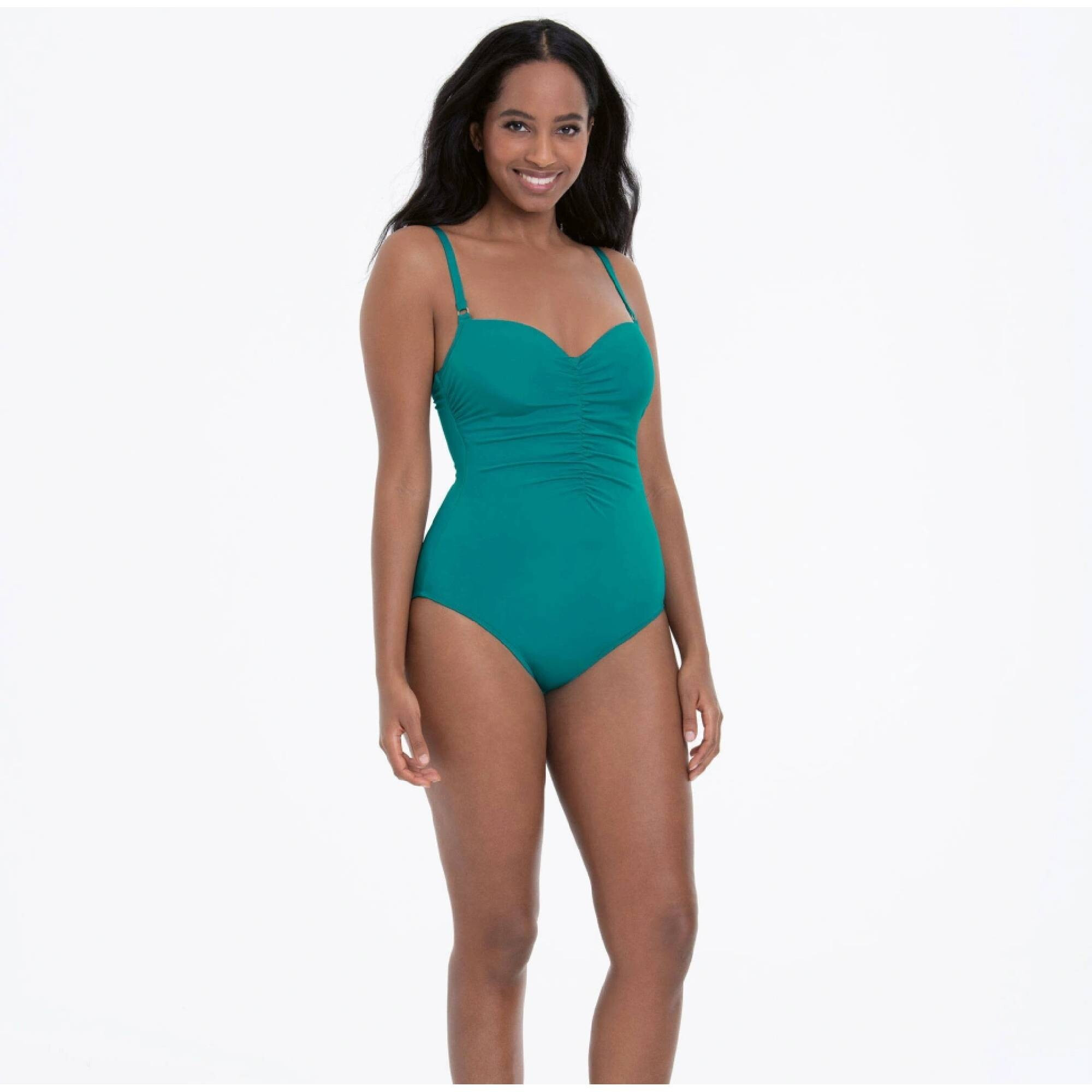Dámske luxusné jednodielne plavky, vystužené košíčky, bez kostice, podšité gumou pre pohodlie. Ramienka sú posuvné. Vpredu prešité a elastické pre zoštíhľujúci efekt. 80 % polyamid, 20 % elastan
