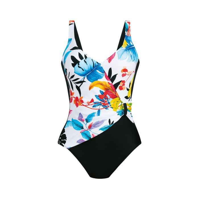 Plavky Elea prinášajú tropy priamo k vám domov! Bez kosticeTieto vystužené plavky zo série "Green Tropics" vytvárajú zoštíhľujúci efekt vďaka asymetrickému bočnému volániku, ktorý je zdobený kovovou sponou. S nastaviteľnými ramienkami, zabudovanými košíčkami a elastickou funkčnou podšívkou ponúkajú dokonalé pohodlie na bezstarostné dni pri jazere, bazéne alebo na pláži. 80 % polyamid, 20 % elastan